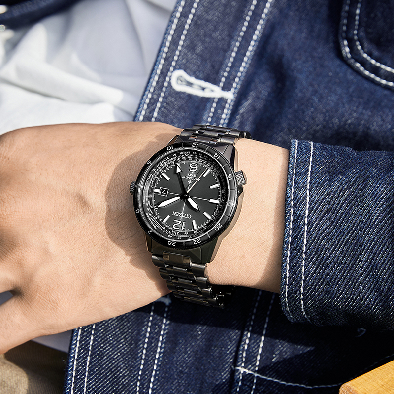 Promaster Air Automatic GMT, новейшее пополнение профессиональной коллекции Promaster Air с новым механическим механизмом. Готовый к полету хронометр диаметром 44,5 мм и водонепроницаемостью до 200 метров — это настоящий «рабочий инструмент», сконцентрированный на выполнении задачи. Он отличается прочной конструкцией из нержавеющей стали с серым ионным покрытием, 24-часовым безелем и двумя массивными заводными головками в том же стиле.