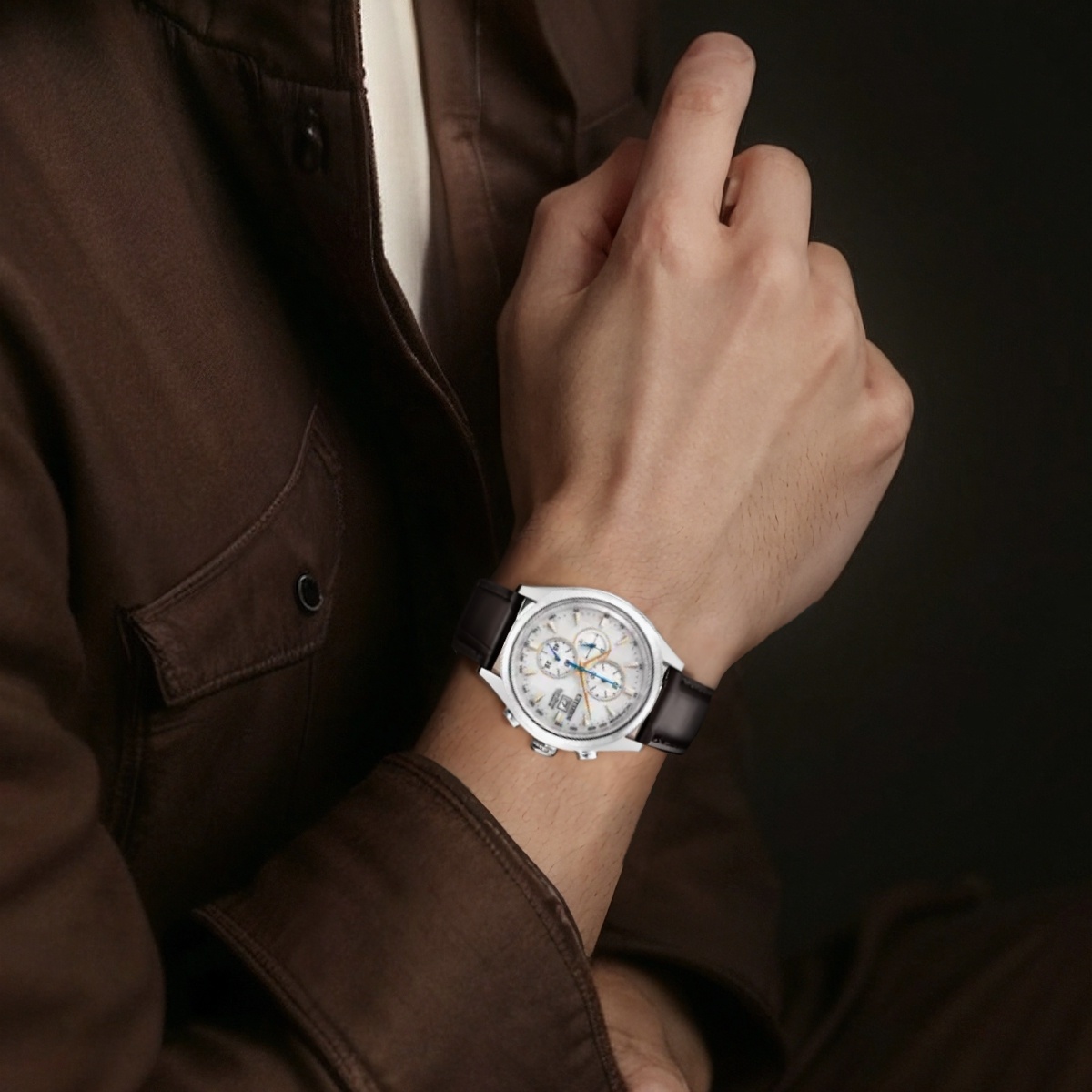 CITIZEN Часы Solar Quartz Movement Cowhide Strap Watch 42.5mm Men's Watch White Dial, White Dial
