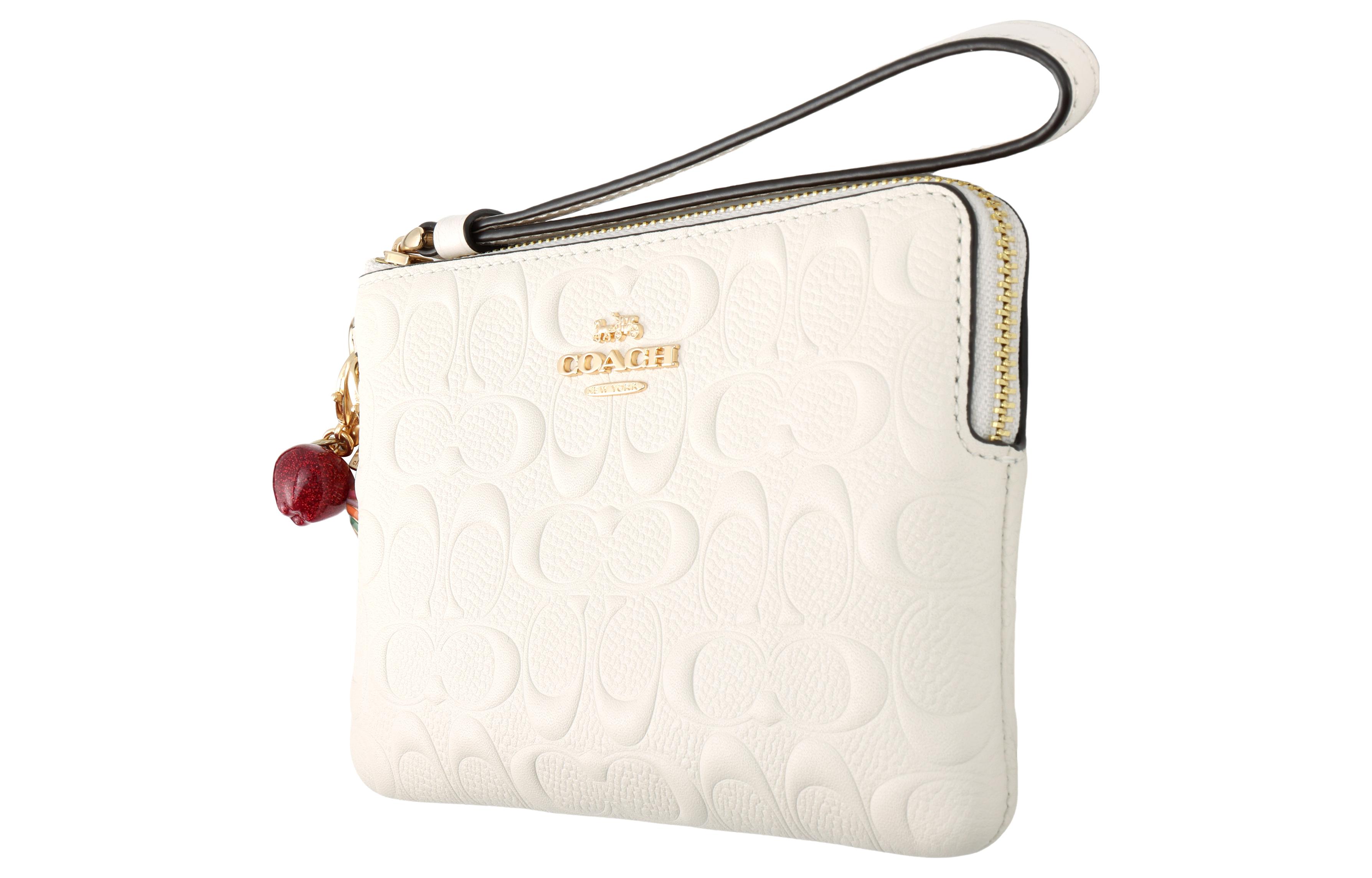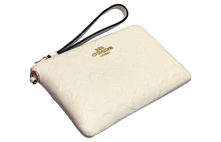 COACH Кожаный клатч на запястье миниатюрный женский белый мел