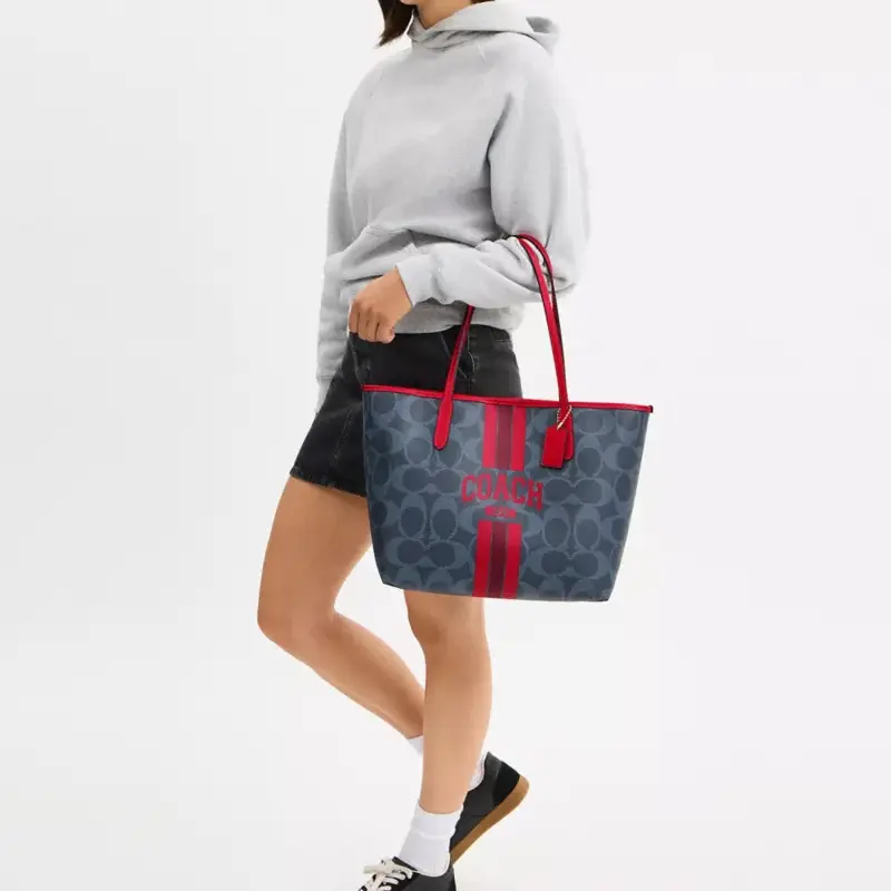 COACH Городская сумка-шоппер из джинсовой ткани с покрытием