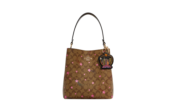 COACH Кожаный брелок для сумки с покрытием из ткани
