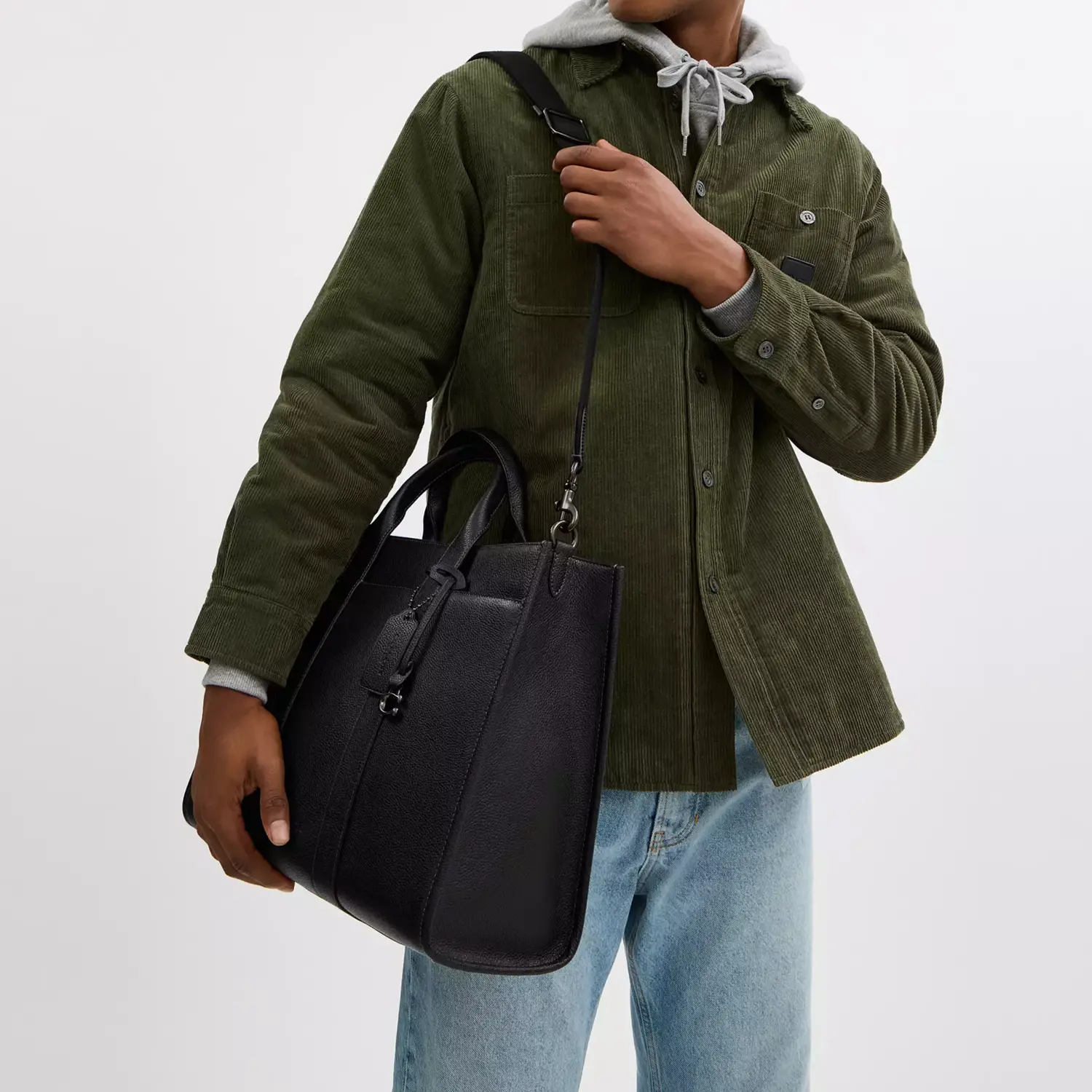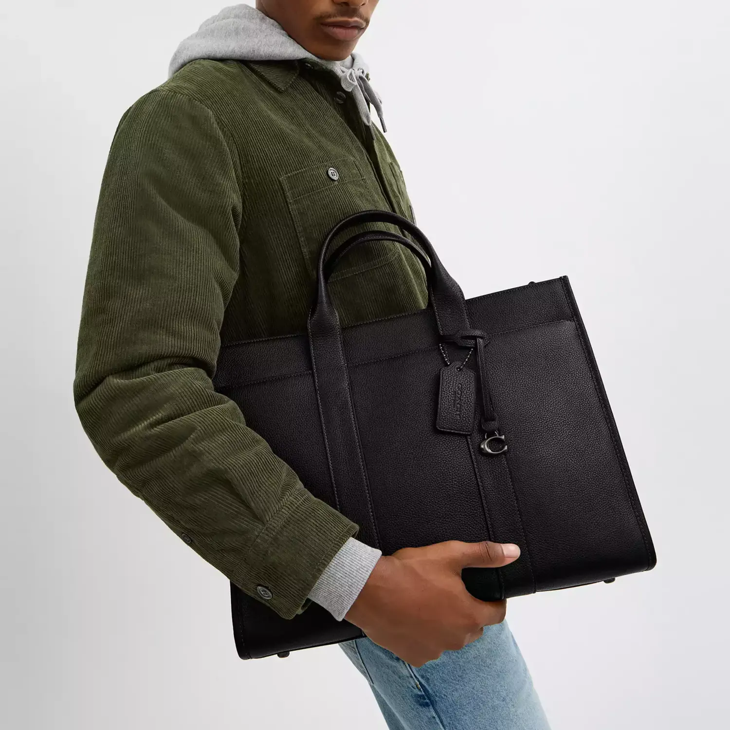 COACH Полированная кожаная сумка-шоппер с текстурой личи, Gift Box Set (Basic Set+Black Box)