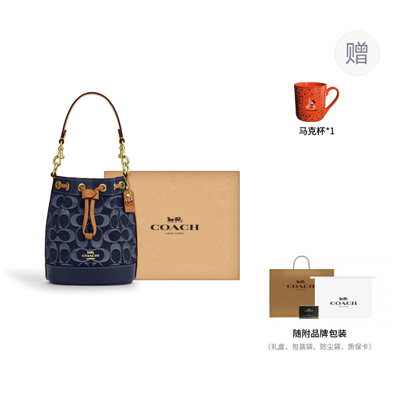 COACH Сумка-ведро из джинсовой ткани с кожаной пряжкой, Gift Box Set (Basic Set+Black Box)