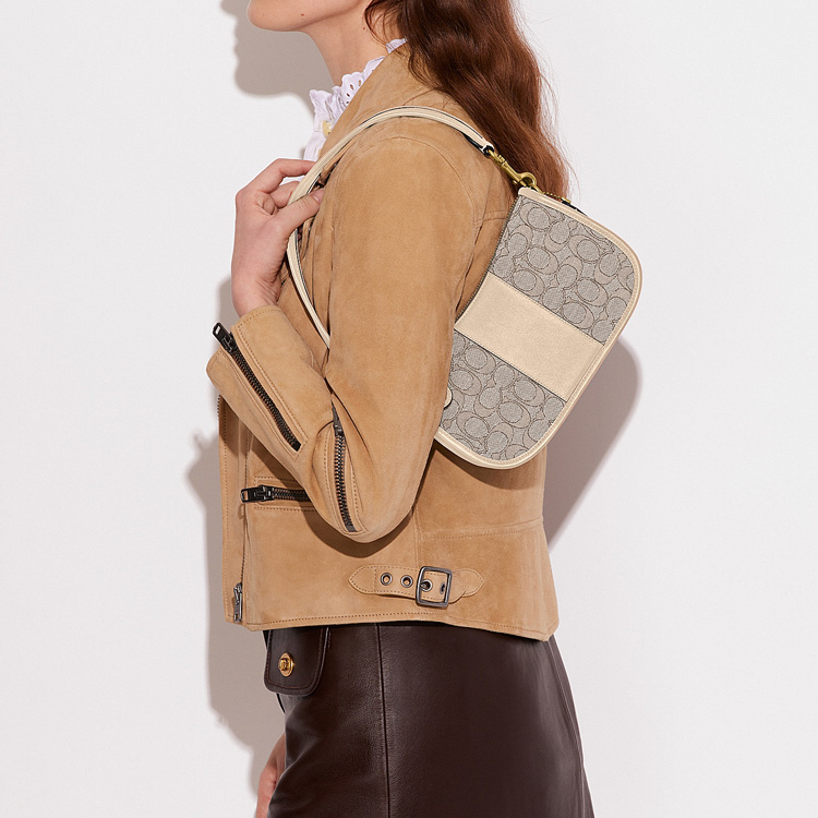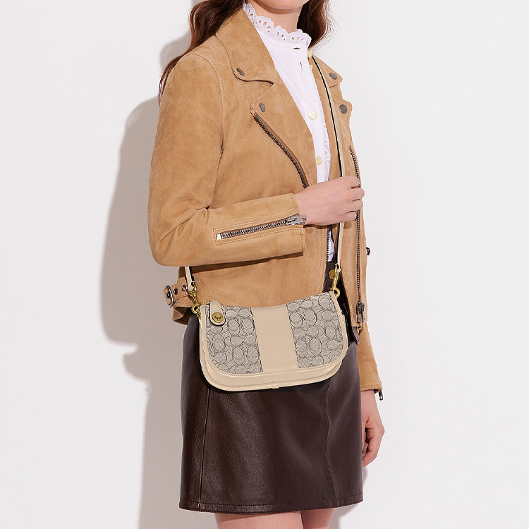 COACH Сумка через плечо из ткани с кожаными вставками