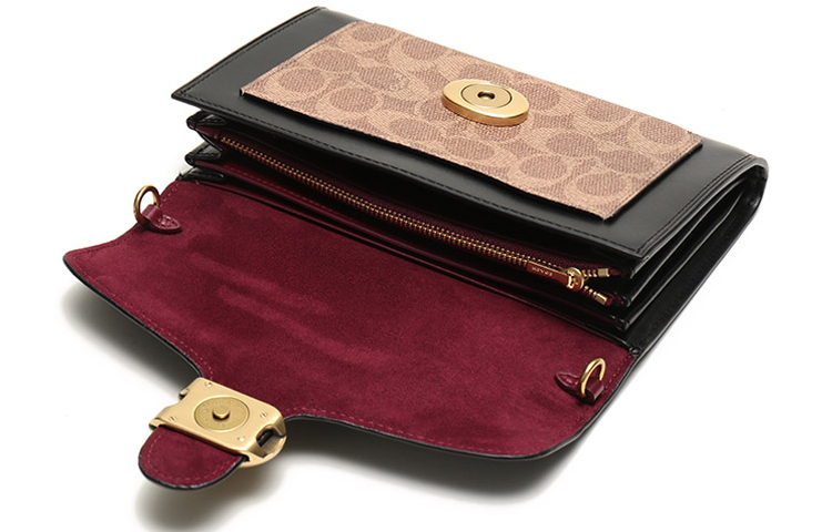 Изящный клатч Tabby, изготовленный из фирменной парусины и изысканной кожи, представляет собой свежую интерпретацию классического дизайна Coach 1970-х годов. Его трёхсекционная конструкция включает в себя надёжное внутреннее отделение на молнии и внешний накладной карман для удобного доступа к необходимым вещам, а фирменная фурнитура добавляет нотку культового стиля. Эту универсальную сумку можно носить как клатч или через плечо благодаря элегантному плечевому ремню-цепочке. Она идеально подходит как для официальных мероприятий, так и для повседневных дел.