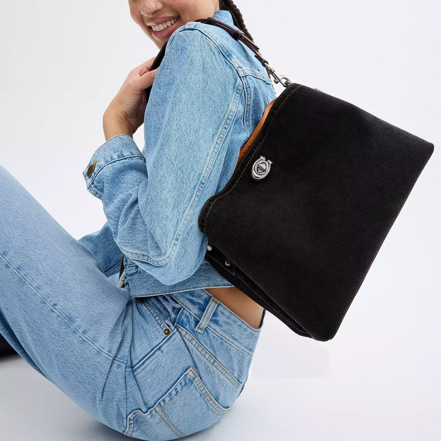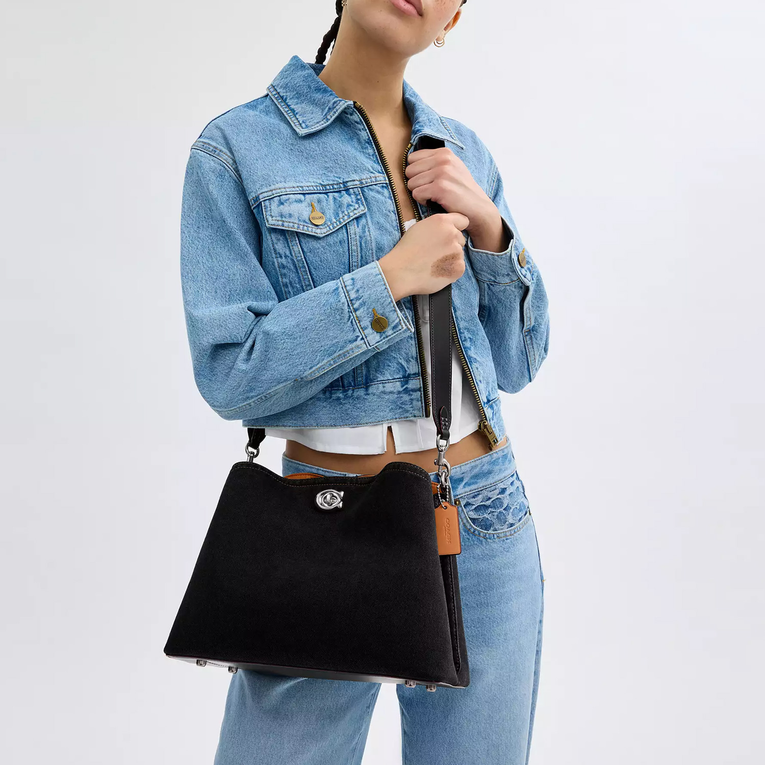 COACH Джинсовая сумка через плечо с кожаной отделкой