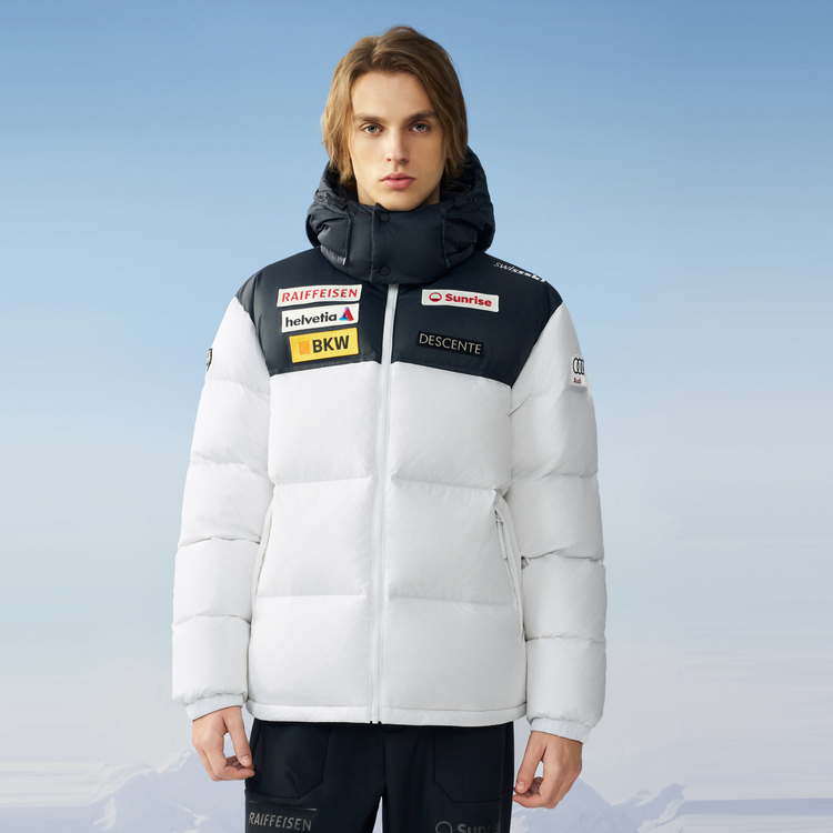 DESCENTE Стильная мужская куртка с капюшоном на пуху, WT-White