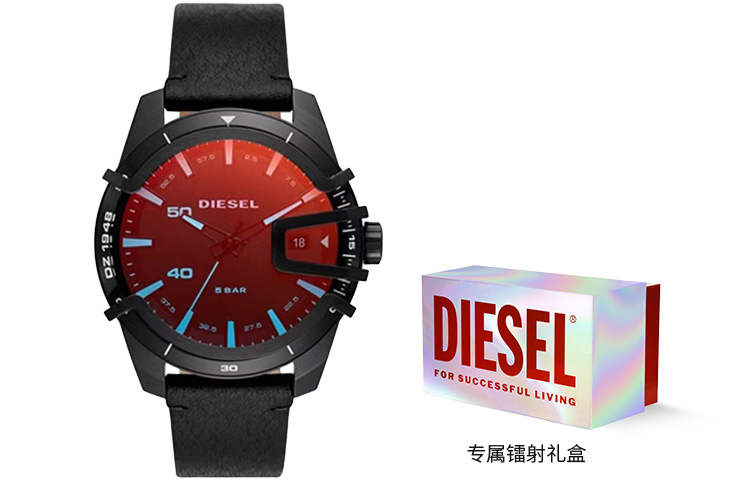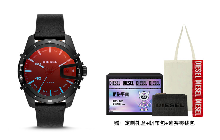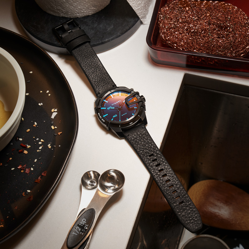 DIESEL Часы CAGED Wrist Watch Quartz Movement Leather Strap Black Dial Unisex, Black