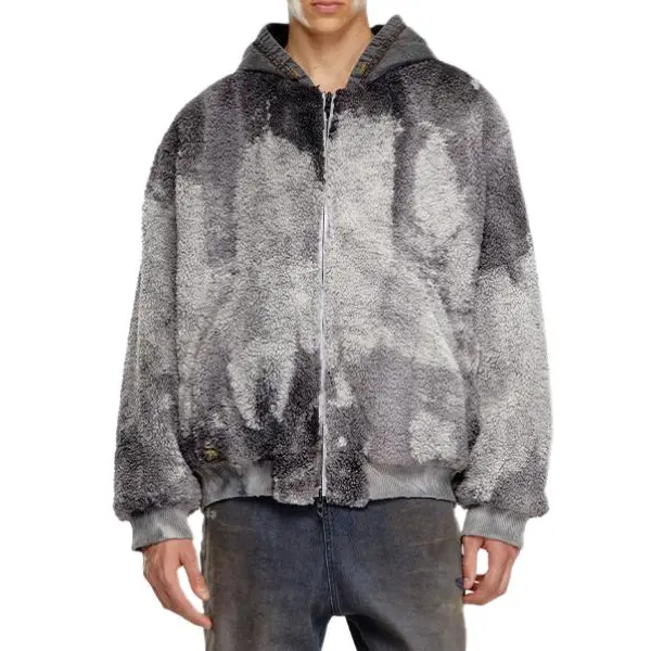 DIESEL Стильный тай-дай тедди куртка с джинсовым капюшоном, Black White