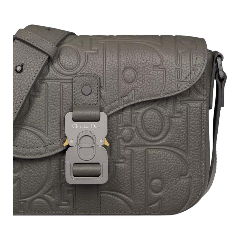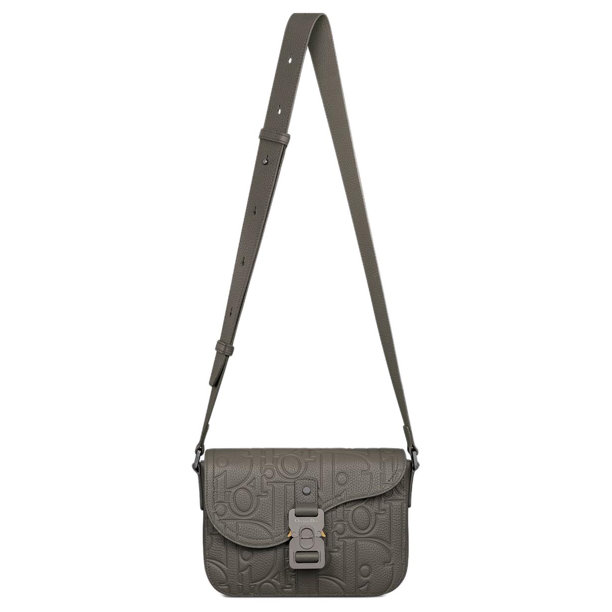 DIOR Кожаная мужская сумка через плечо серая
