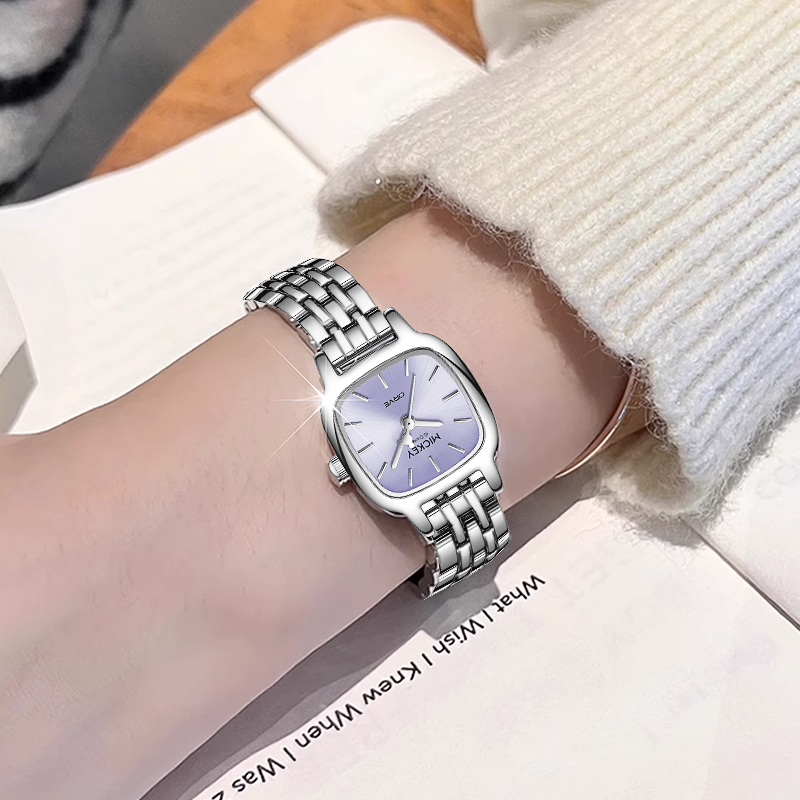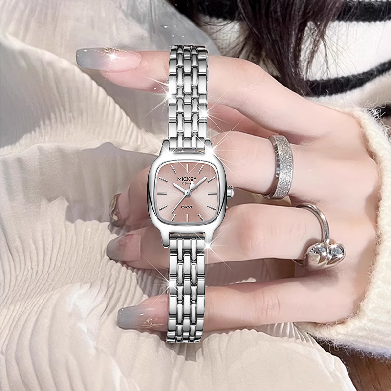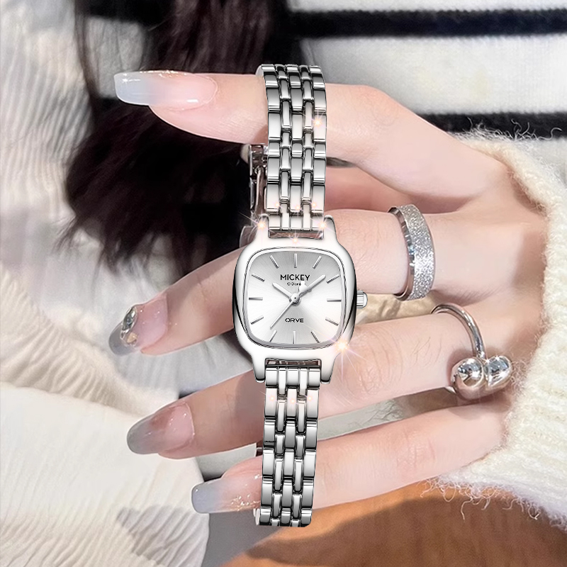 Disney Часы Luxury Small Sugar Cube Quartz Movement Alloy Strap Watch Women's Watch Silver Dial, Moonlight Silver