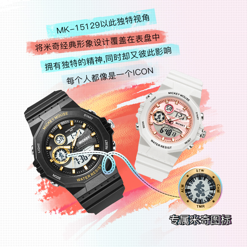 Disney Часы Mickey Series Electronics + Quartz Movement Watch Unisex Black Dial, MK-15129B2 Black