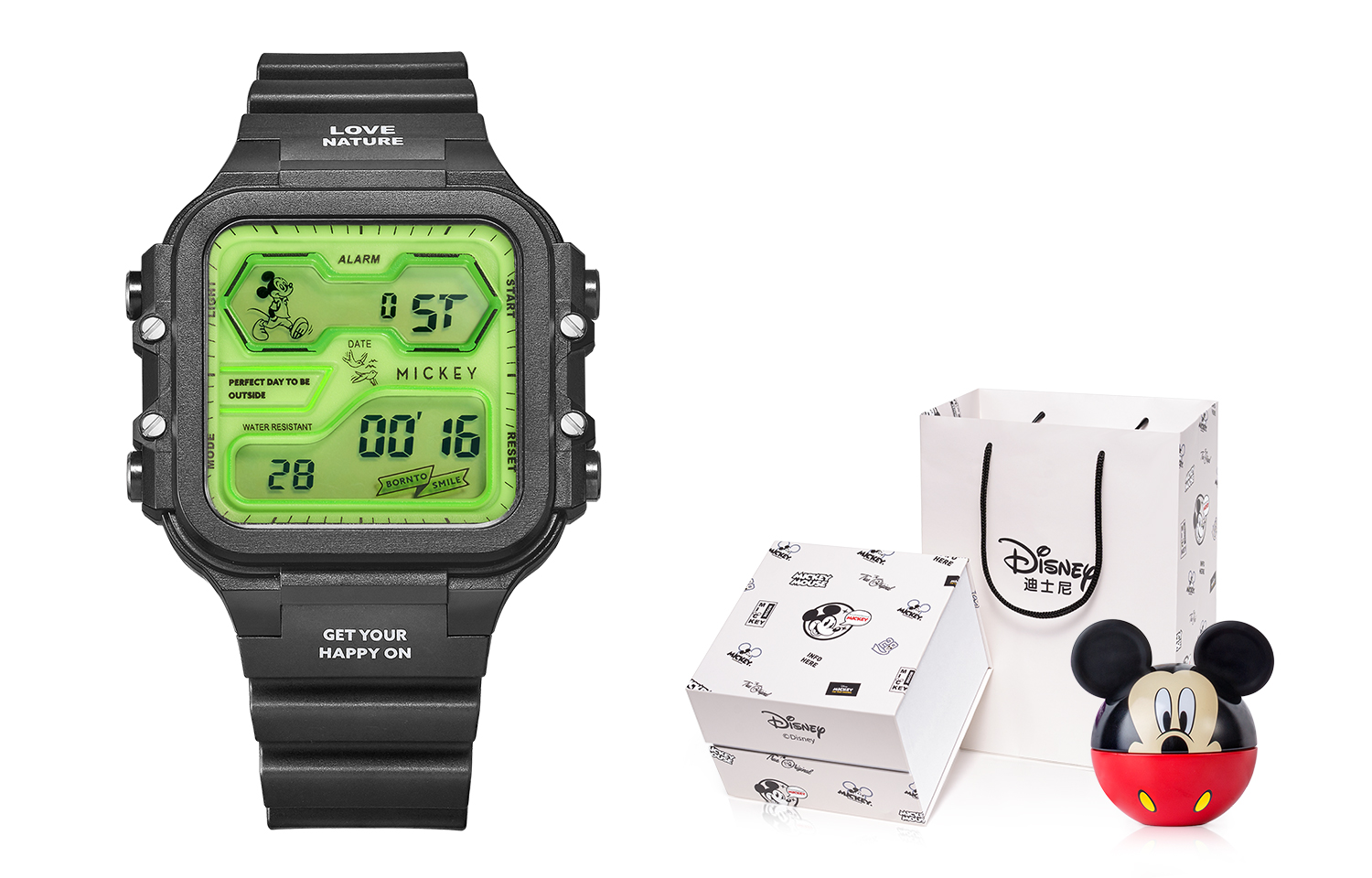 Disney Часы Mickey Series Gift Box Set Electronic Movement Resin Strap Watch Unisex Green Dial