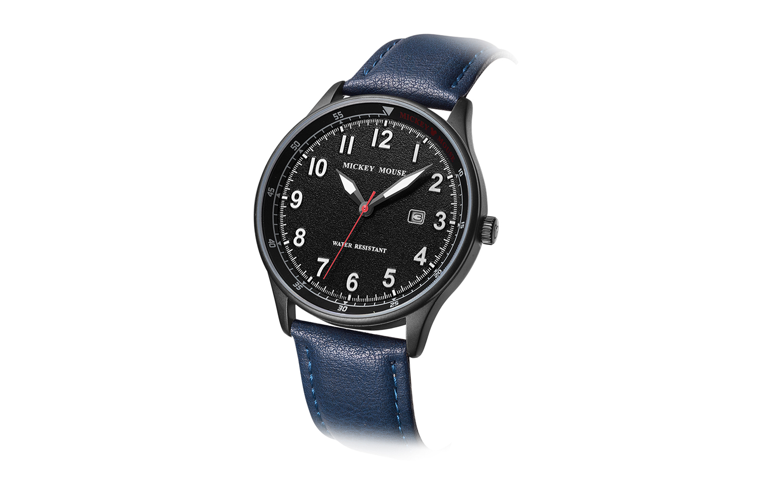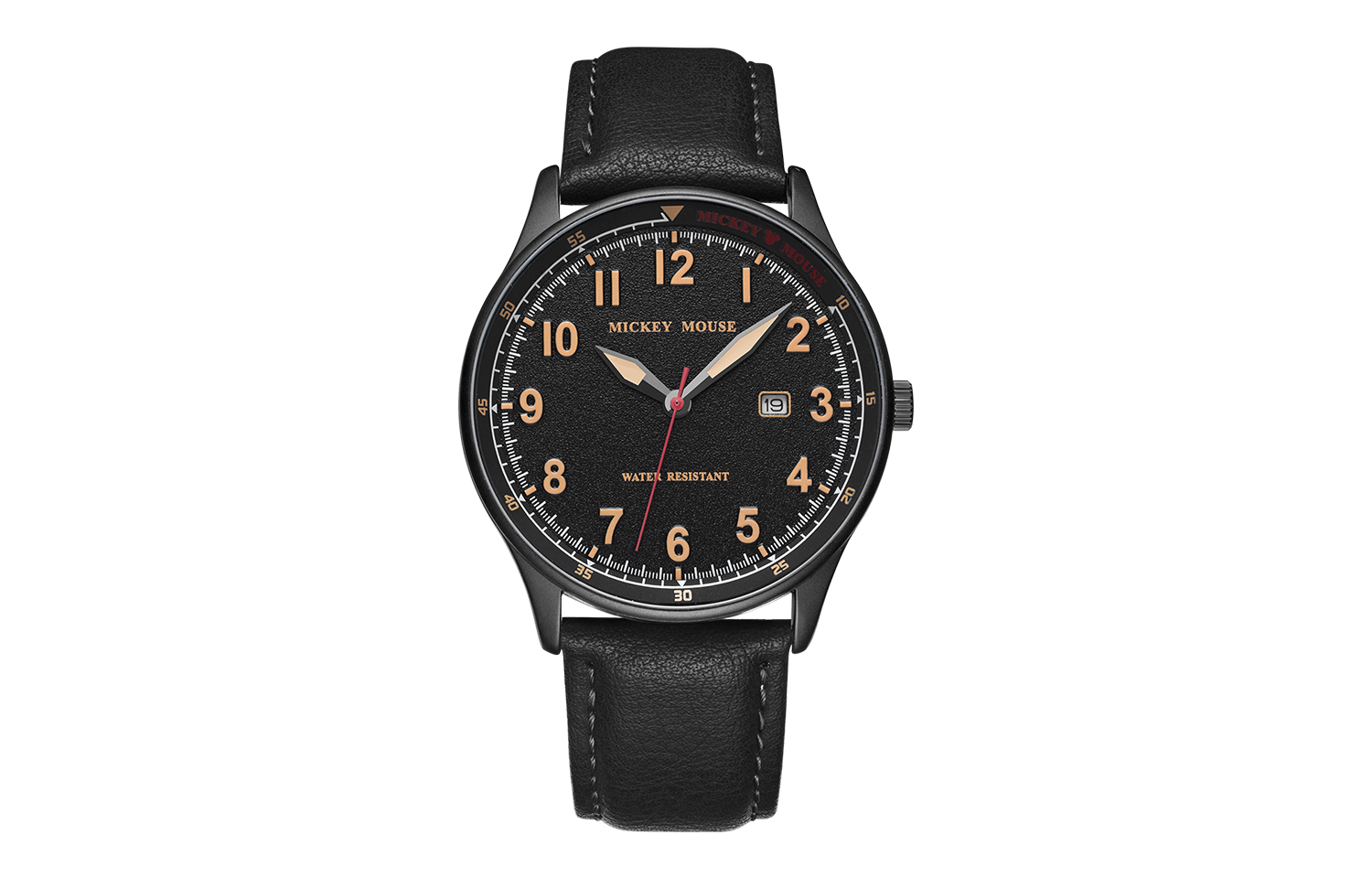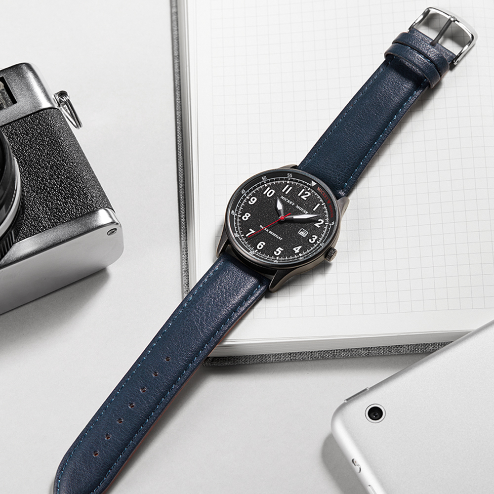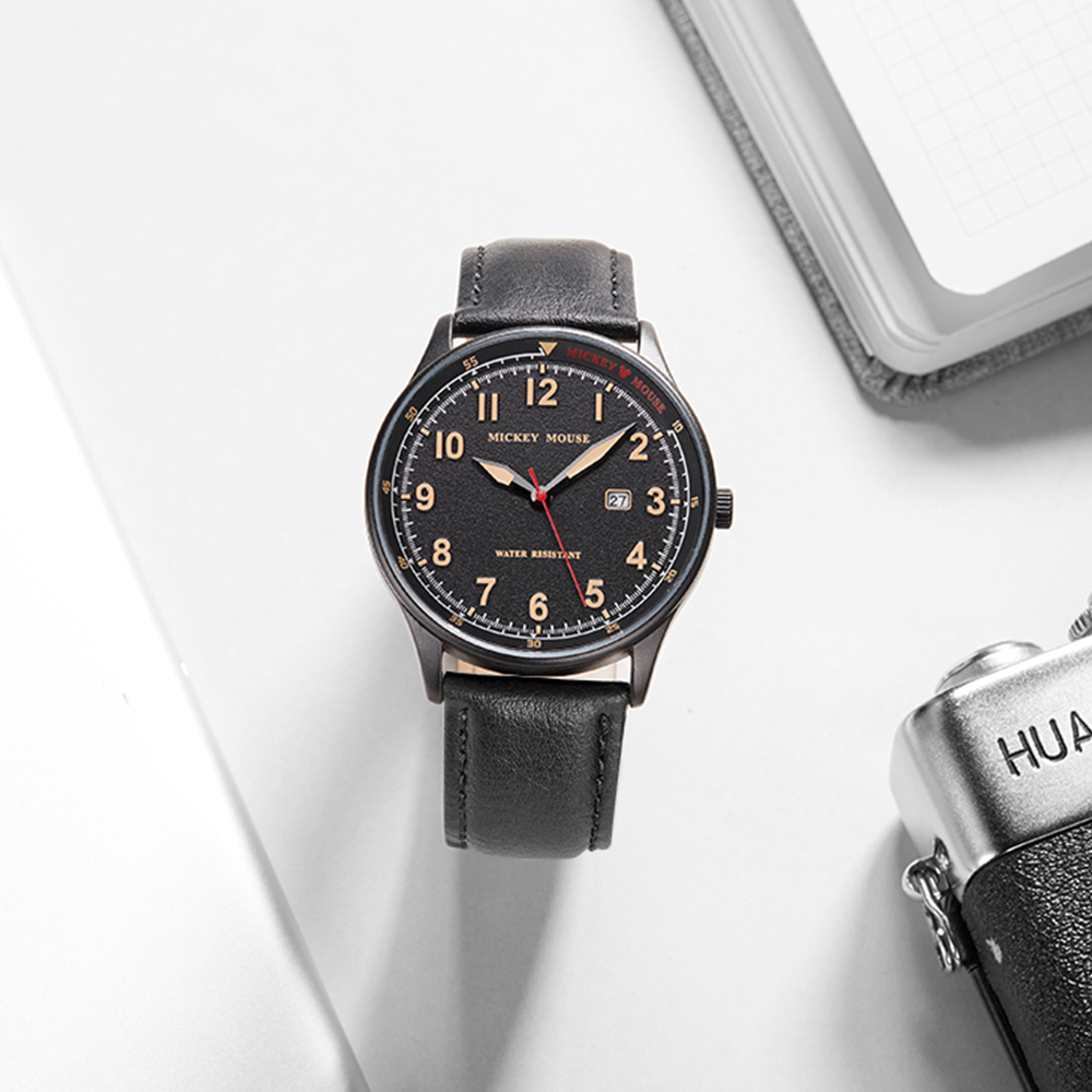 Disney Часы Mickey Series Quartz Movement Leather Strap Watch Men's Watch Black Dial