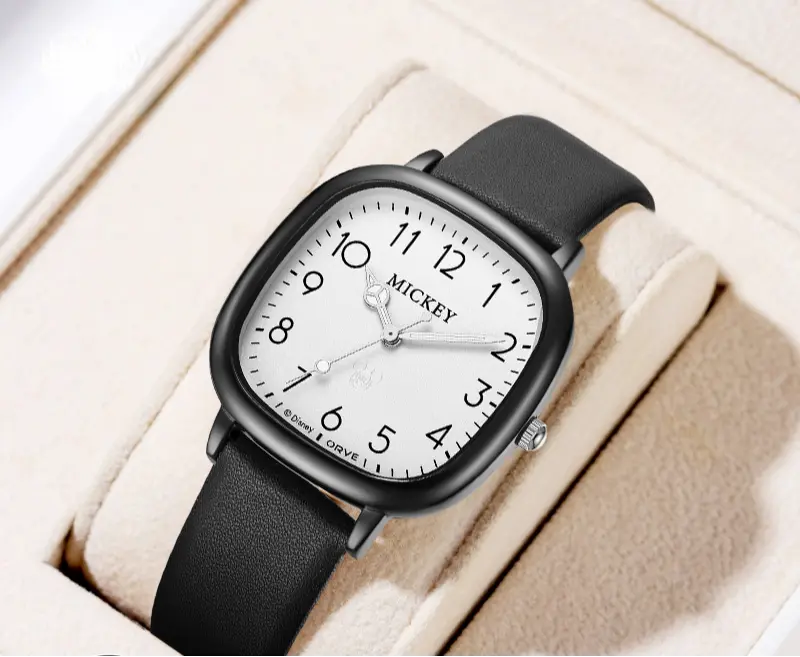 Disney Часы Mickey Series Quartz Movement Leather Strap Watch Women's Watch White Dial, Black