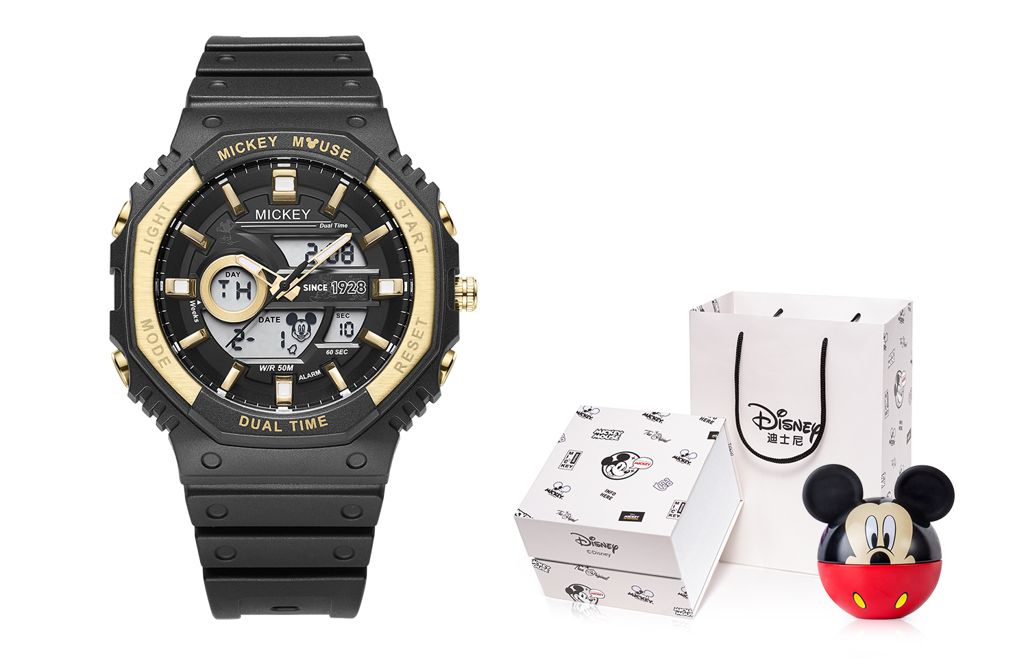 Disney Часы Mickey Series Quartz Movement Resin Strap Watch Unisex Black Dial