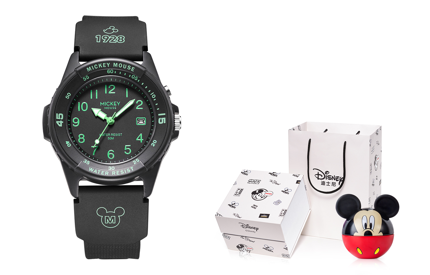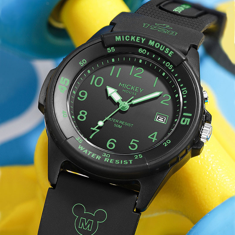 Disney Часы Mickey Series Quartz Movement Rubber Strap Watch Women's Watch Black Dial