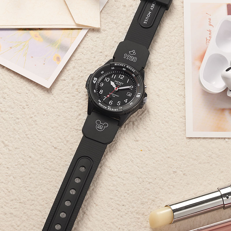 Disney Часы Mickey Series Quartz Movement Rubber Strap Watch Women's Watch Black Dial