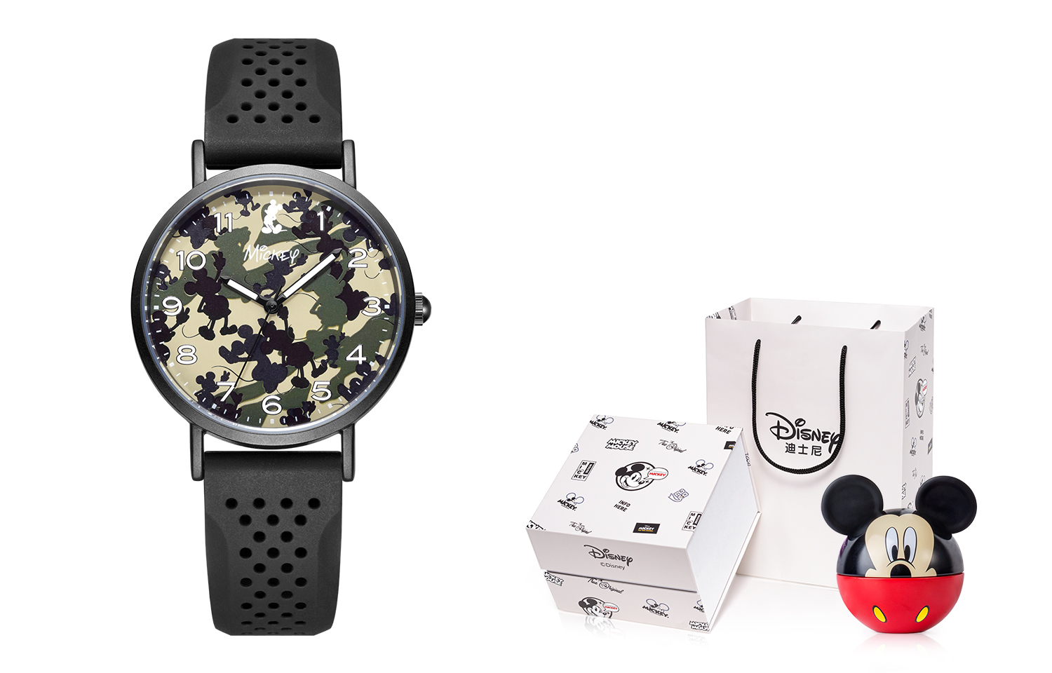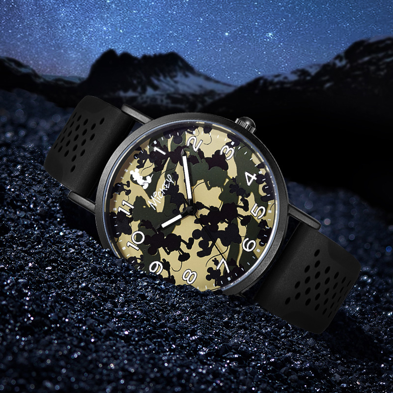 Disney Часы Mickey Series Quartz Movement Silicone Strap Watch Unisex Green Dial