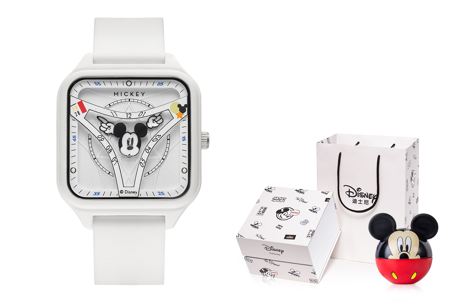 Disney Часы Mickey Series Quartz Movement Silicone Strap Watch Unisex White Dial