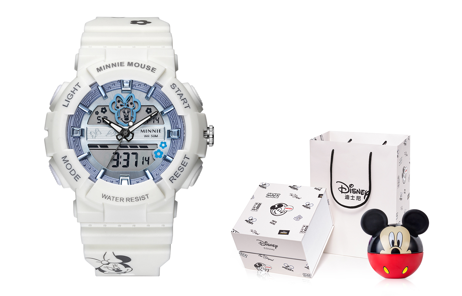 Disney Часы Minnie Series Electronic Movement Rubber Strap Watch Women's Watch Blue Dial