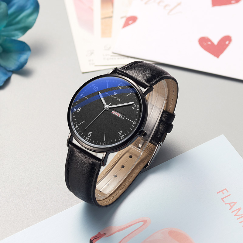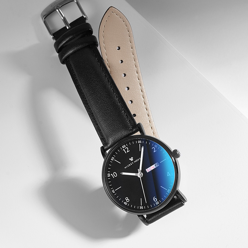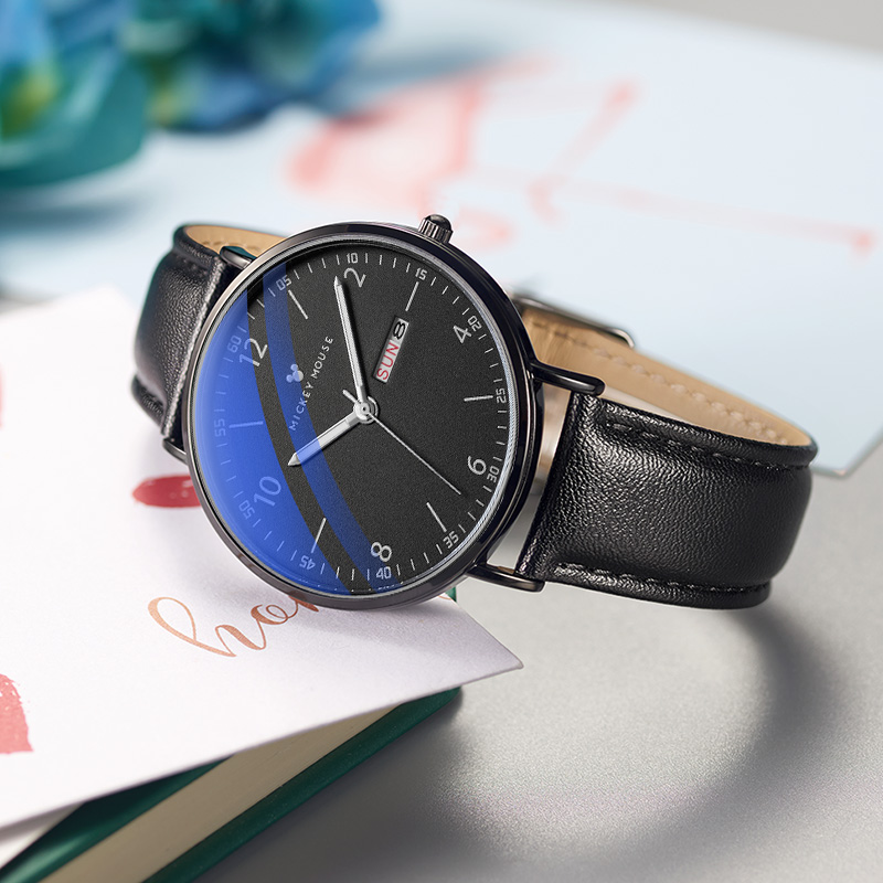 Disney Часы Quartz Movement Genuine Leather Strap Watch Unisex Black Dial, MK-12061B2