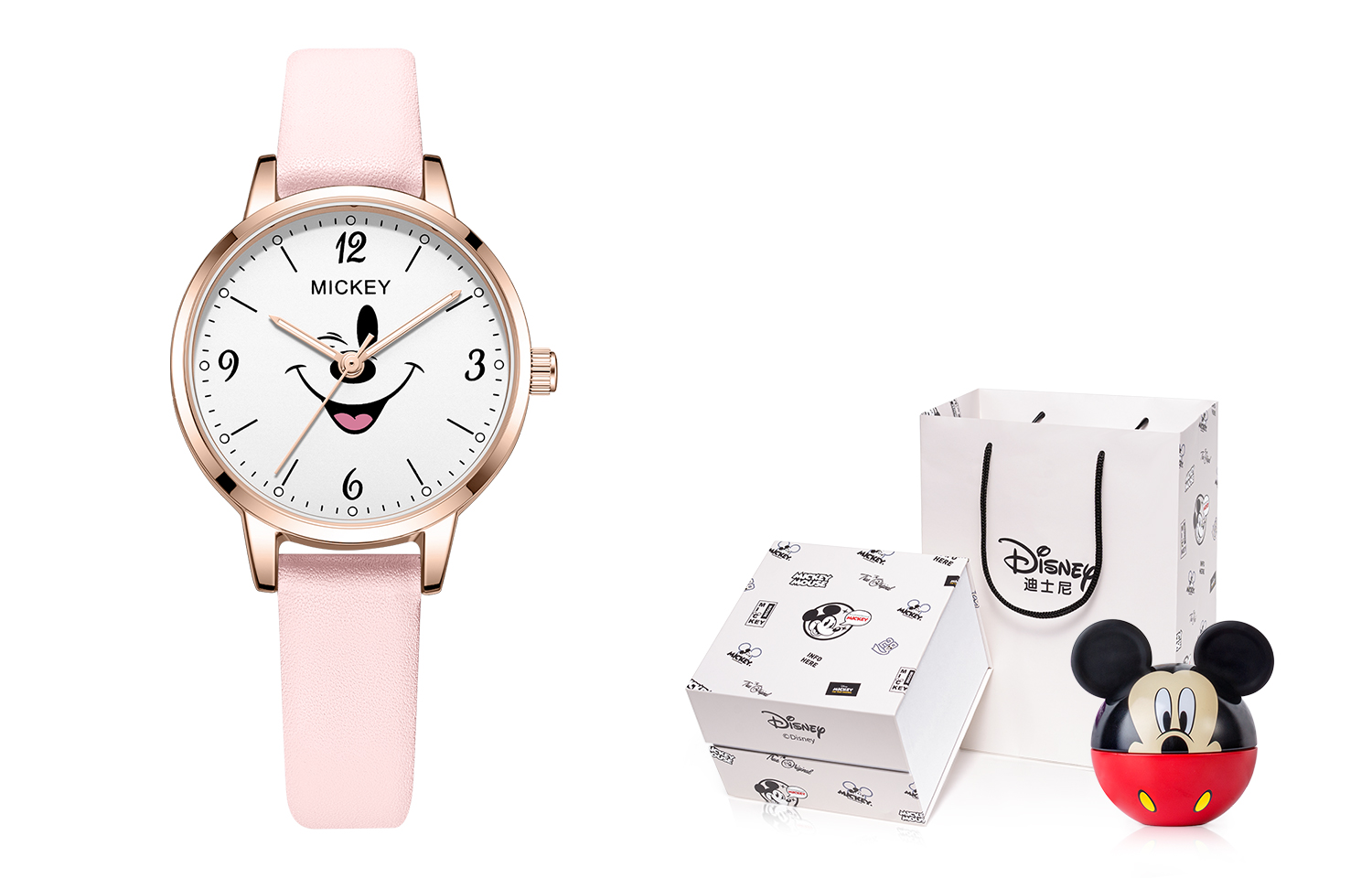 Disney Часы Quartz Movement Leather Strap Watch Unisex White Dial