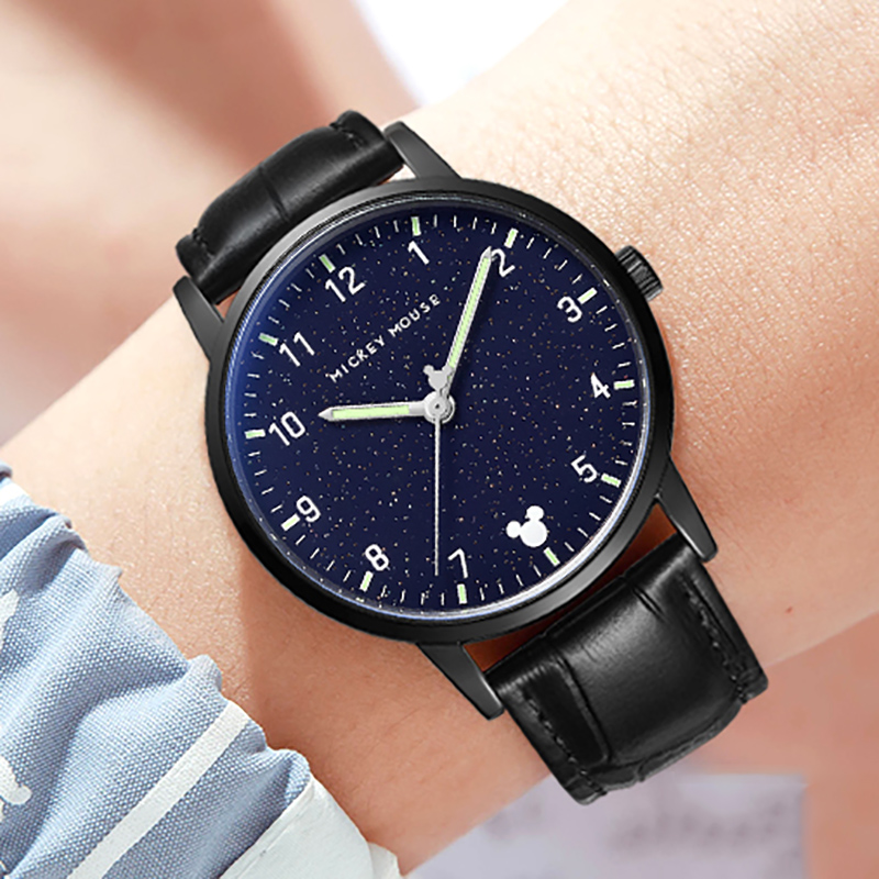 Disney Часы Quartz Movement Watch Men's Watch Black Dial, Starry Sky Leather Strap