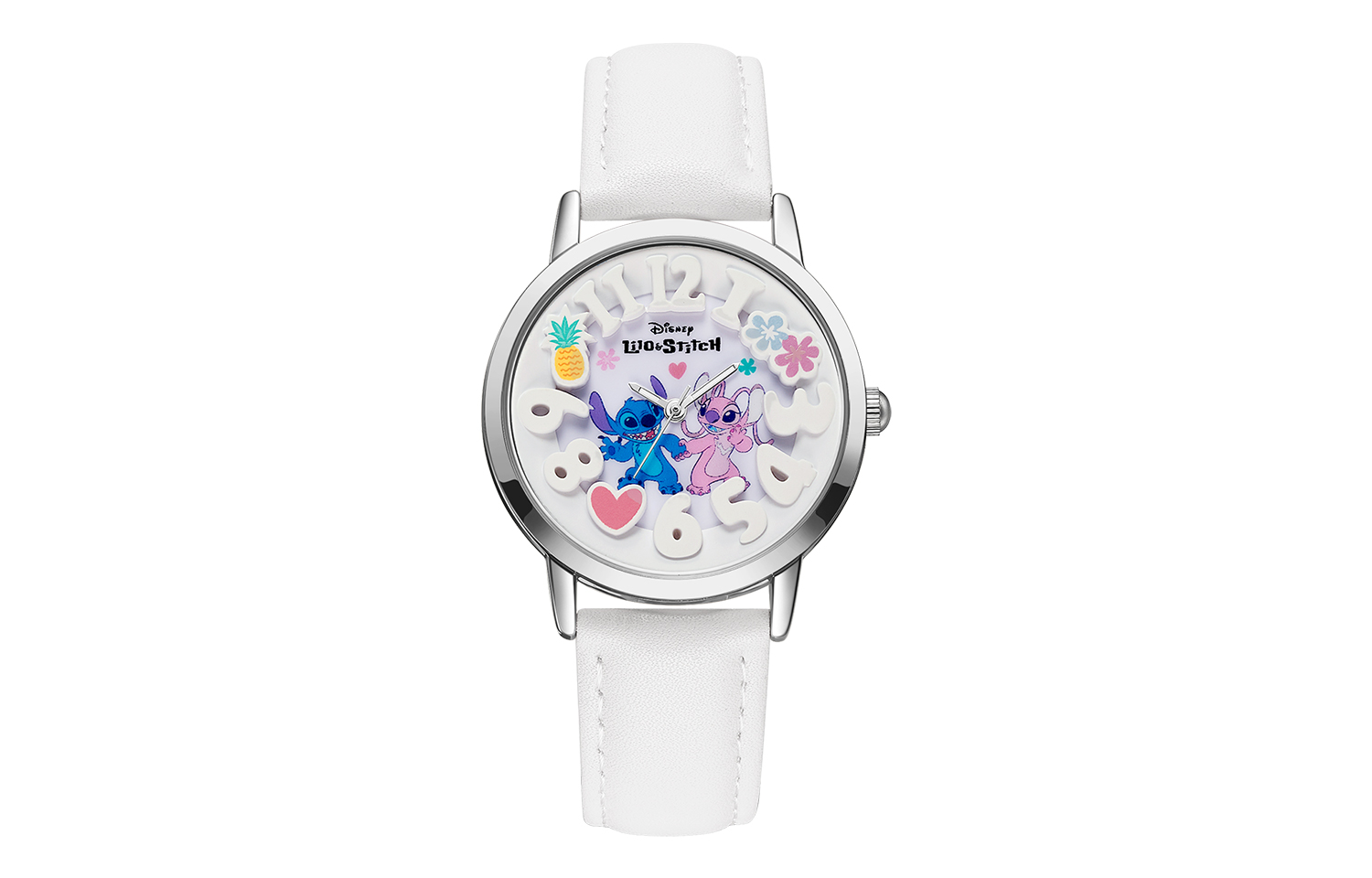 Disney Часы Stitch Series Quartz Movement Leather Strap Watch Women's Watch White Dial