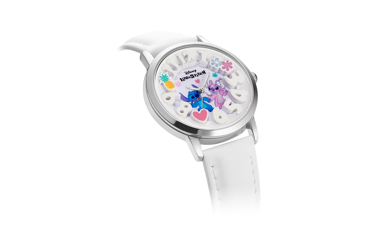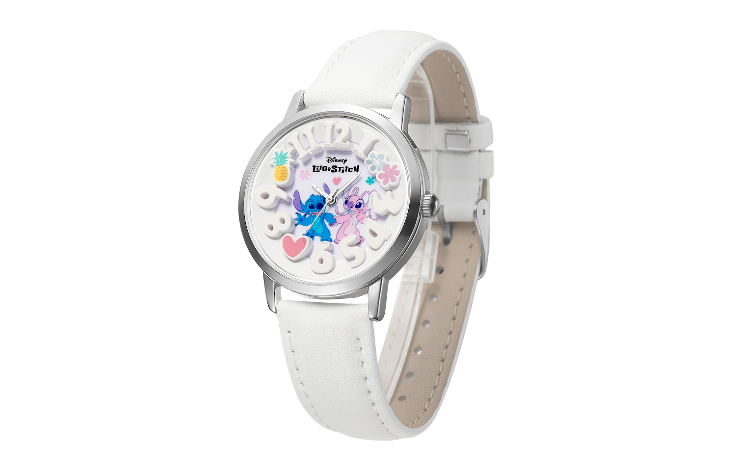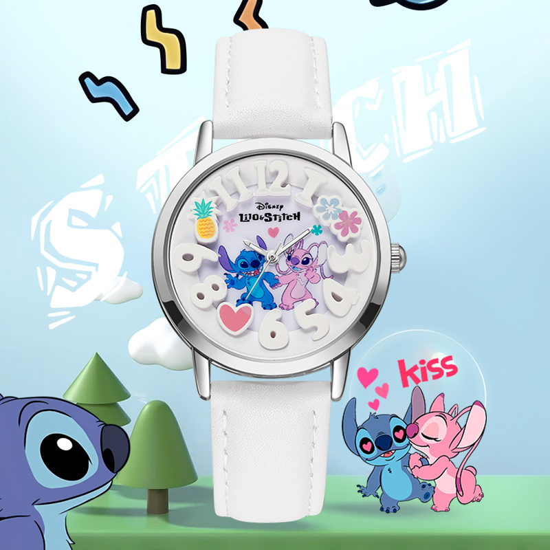 Disney Часы Stitch Series Quartz Movement Leather Strap Watch Women's Watch White Dial
