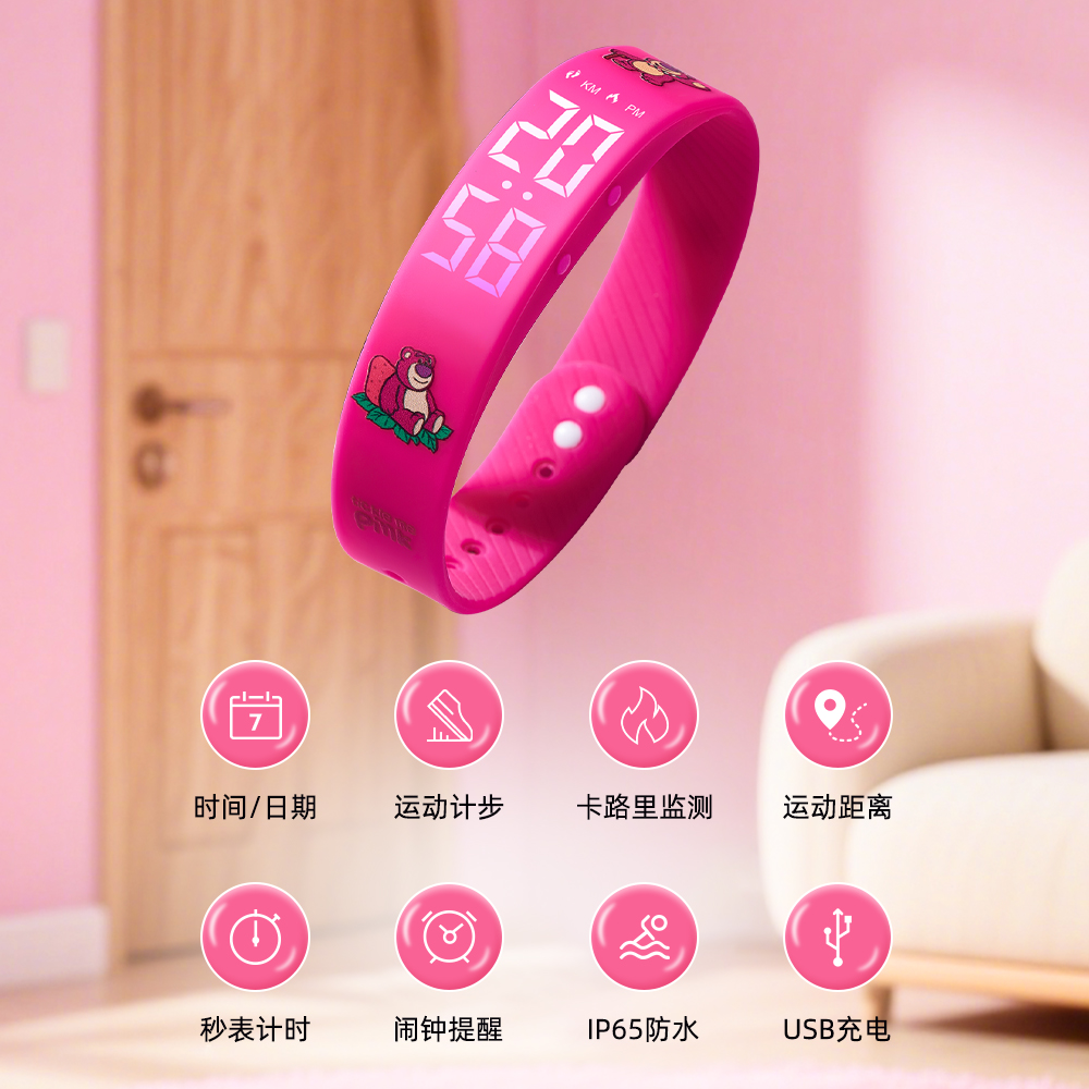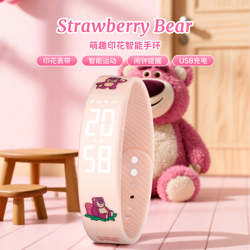 Disney Часы Strawberry Bear Series Smart Movement Silicone Strap Watch Unisex Black Dial 2 490₽