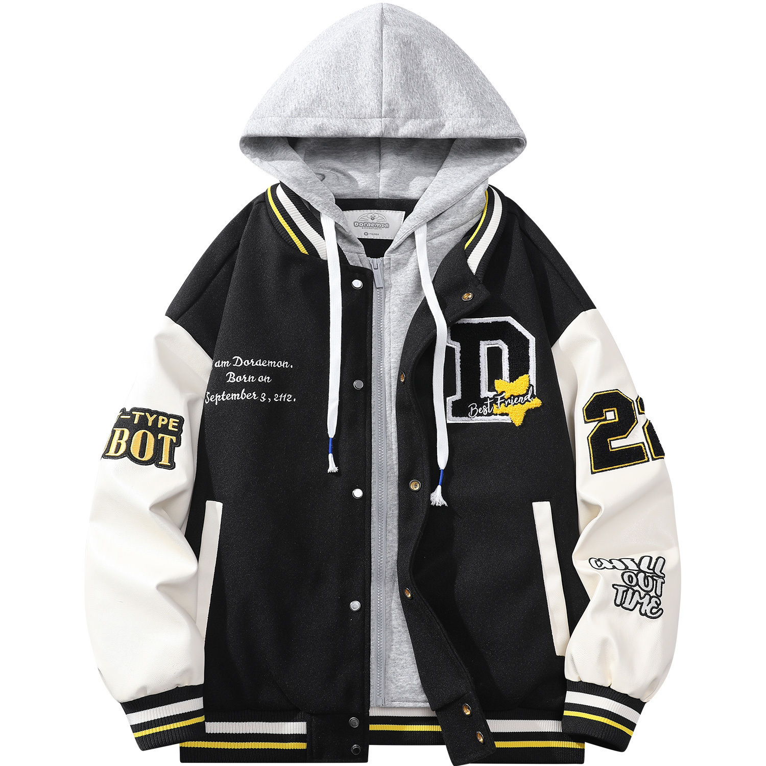 Doraemon Бейсбольная куртка унисекс, Black (Towel Embroidery)