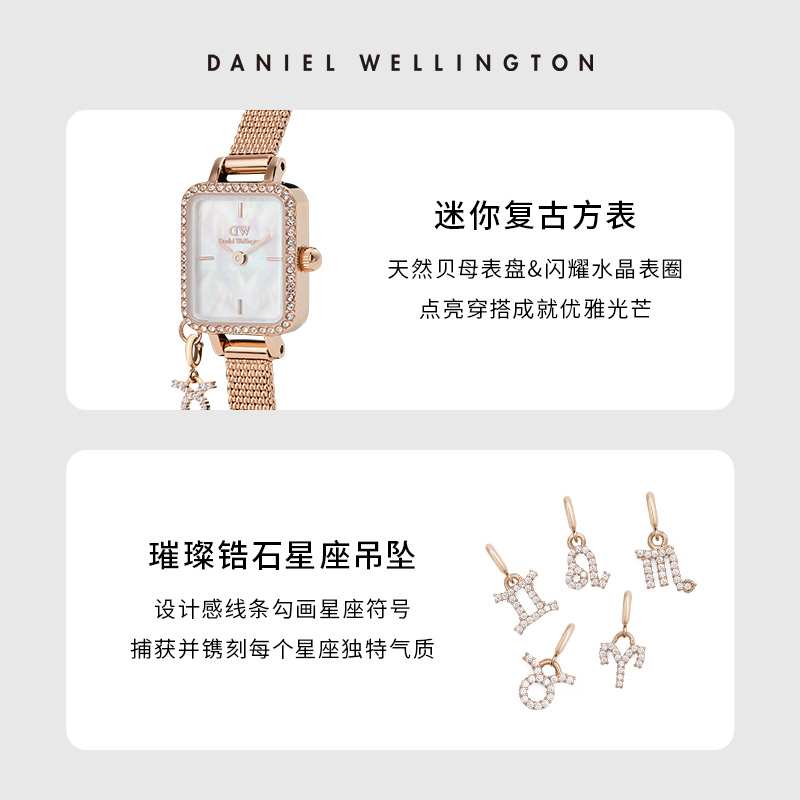 DW/DanielWellington Часы Women's QUADRO Collection Watch, Constellation Small Sugar Cube+Scorpio Pendant