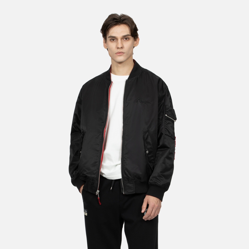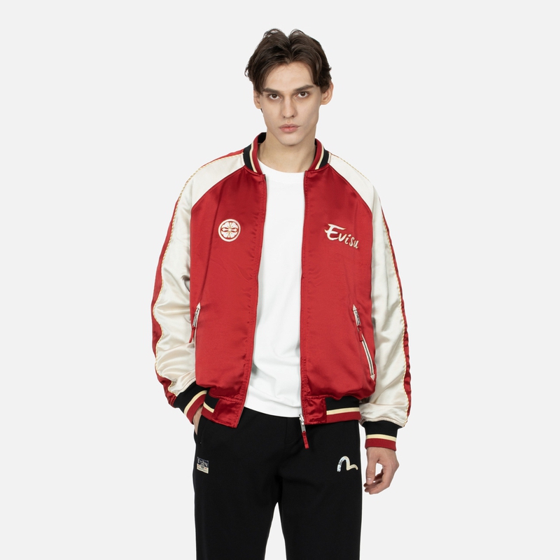 EVISU Сатиновая бомбер куртка Seagull And The Great Wave, Dark Red
