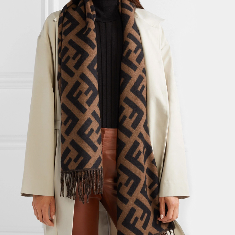 FENDI Джаккардовый шарф с логотипом Ff, Dark Brown