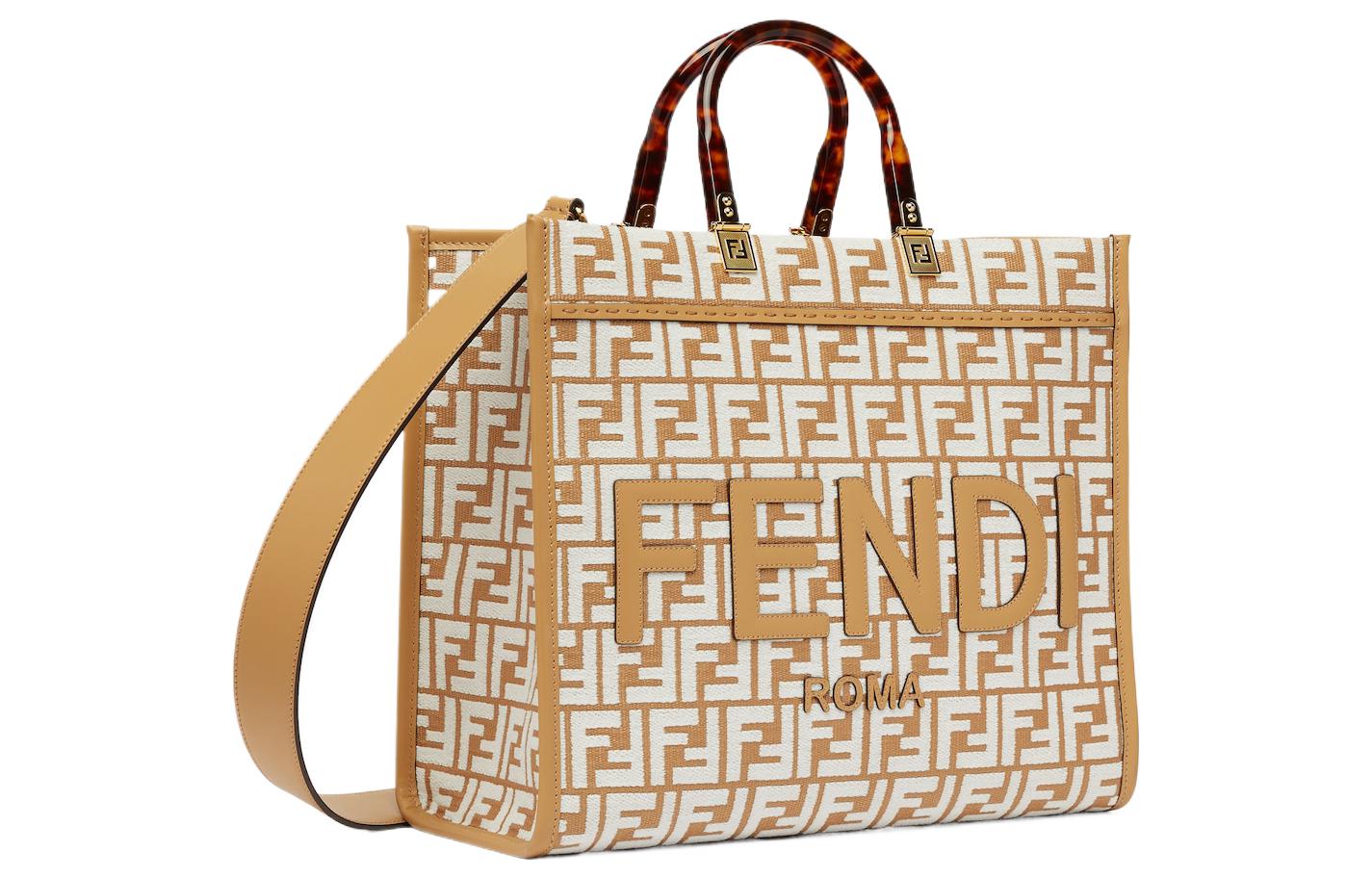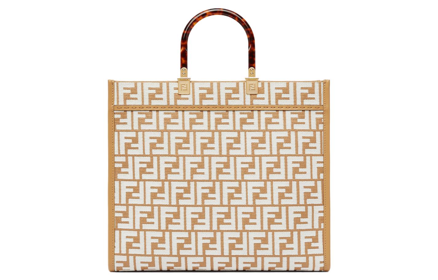 FENDI Сумка-шоппер из рафии с кожаными вставками
