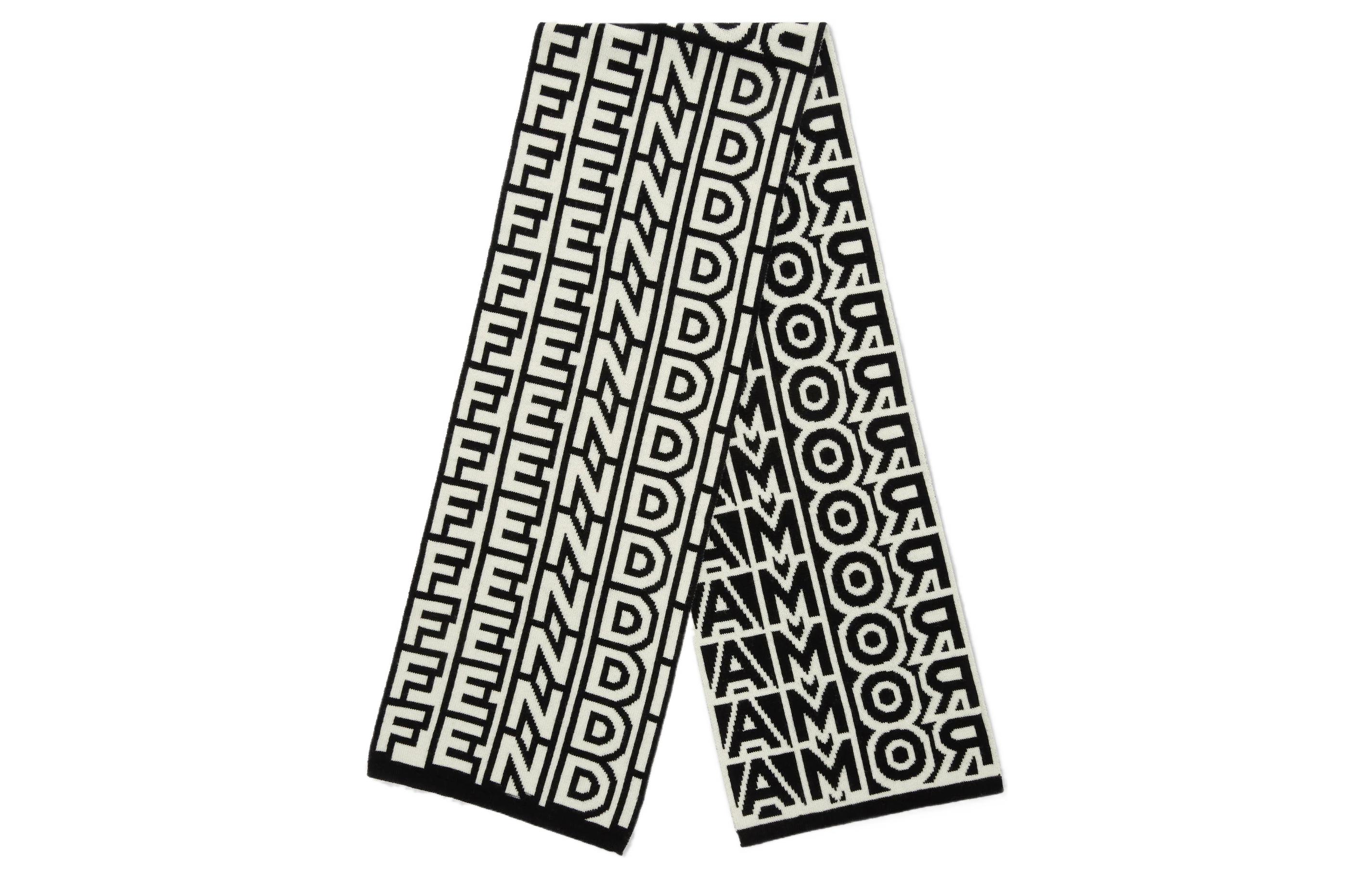 FENDI Шерстяной шарф с логотипом, Black