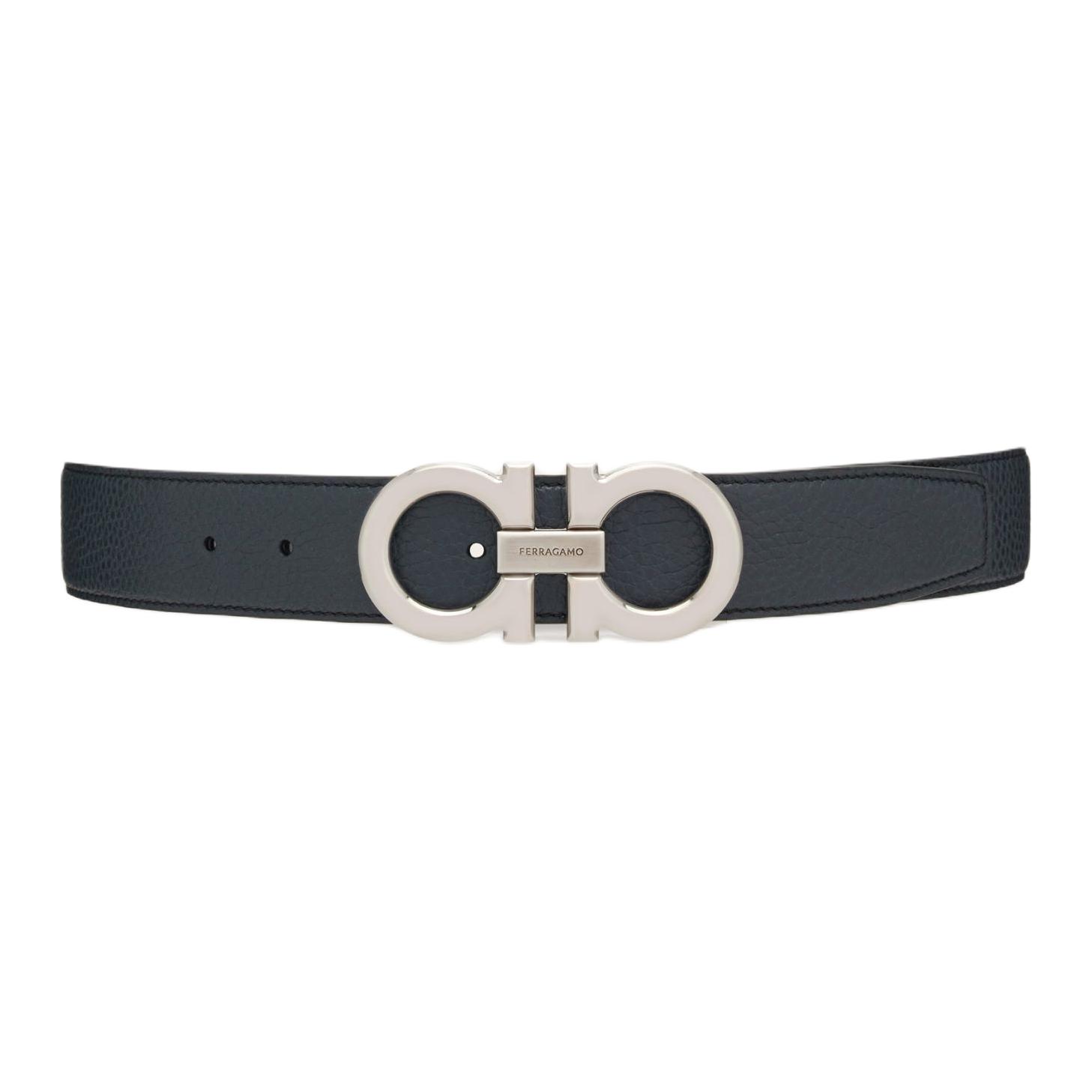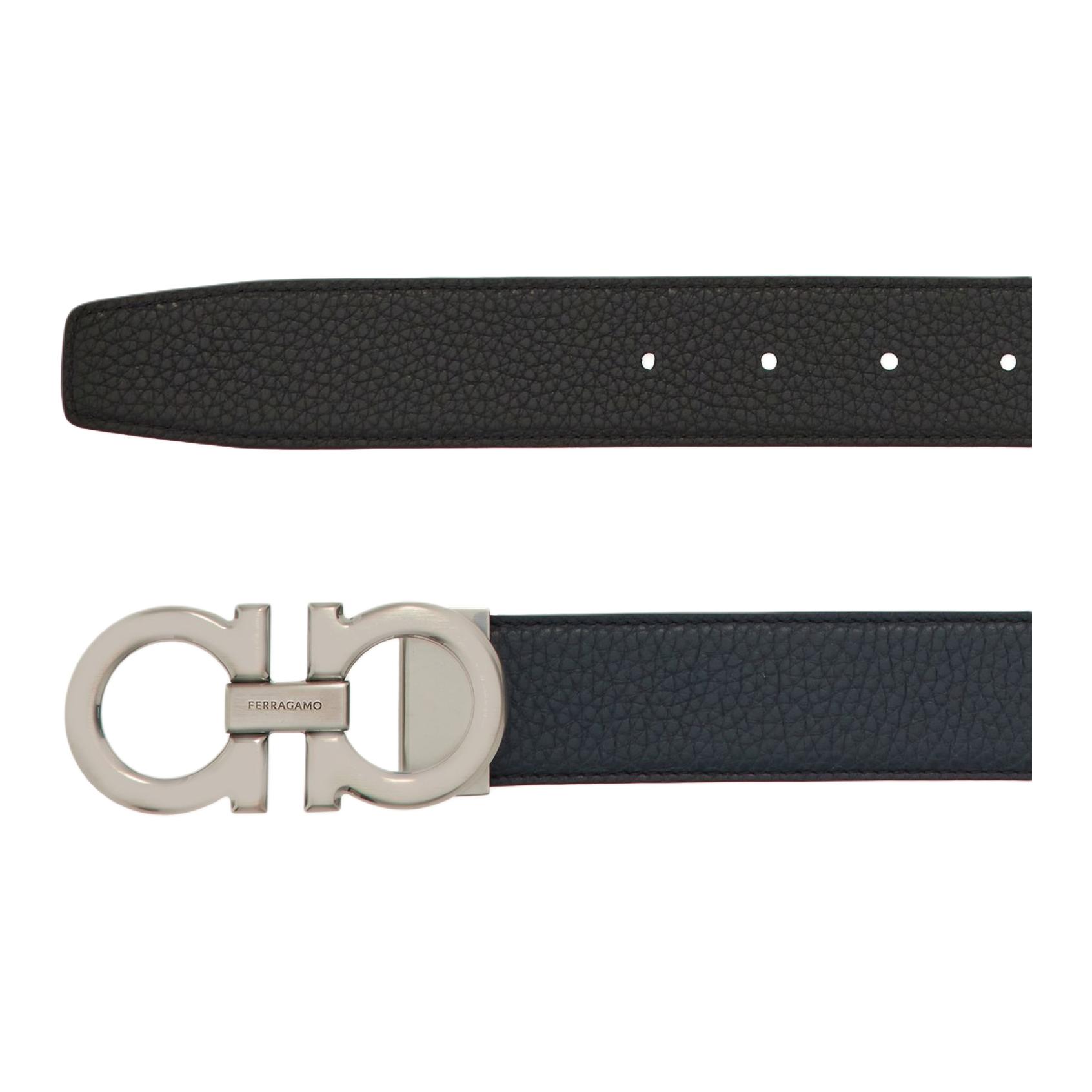 Ferragamo Ремень из кожи с пряжкой Gancini, Black/Dark Blue