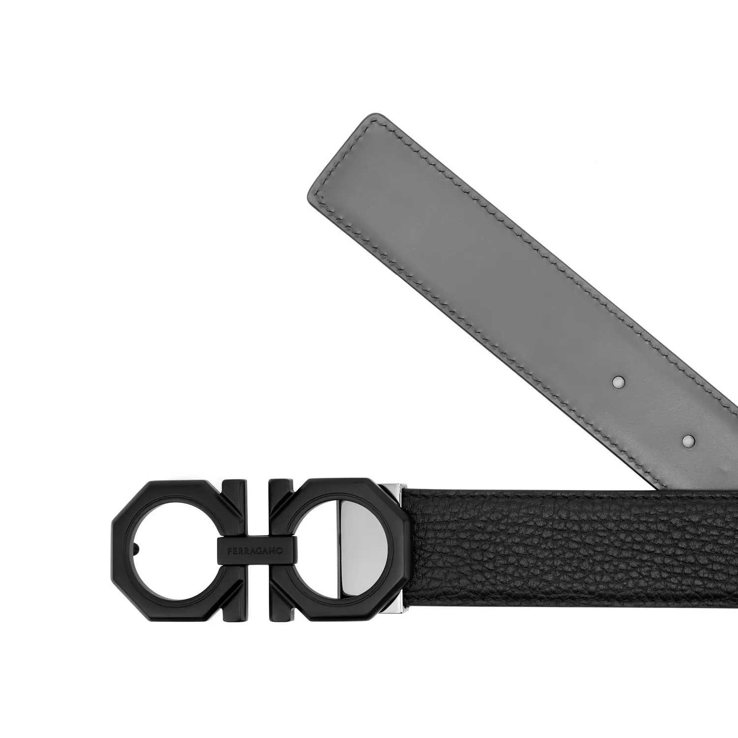 Ferragamo Кожаный ремень с логотипом на пряжке, Black