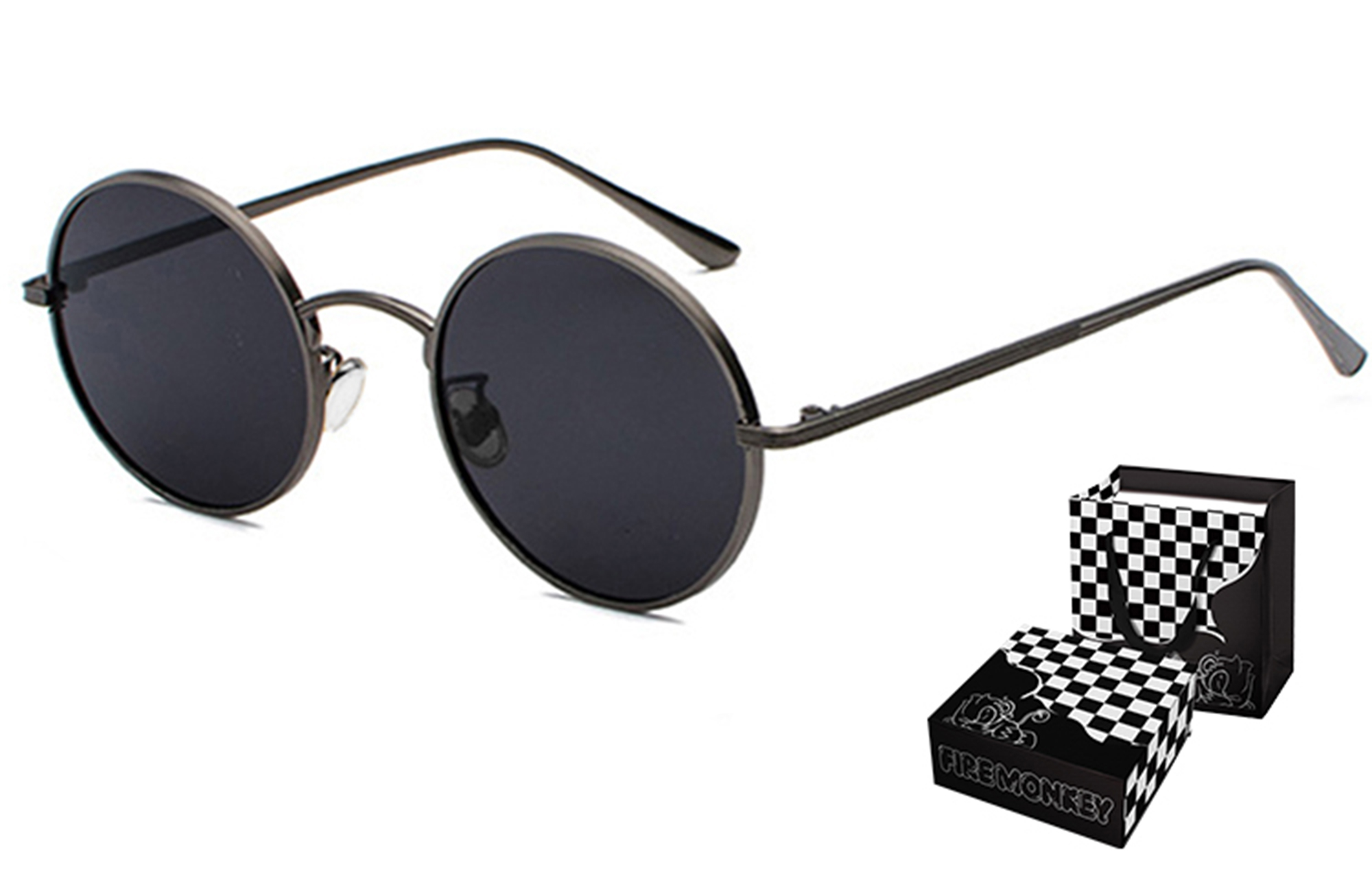 FireMonkey Унисекс круглые солнцезащитные очки из сплава, Black Frame Black Gray+Silver Frame Black Gray (520 Box)