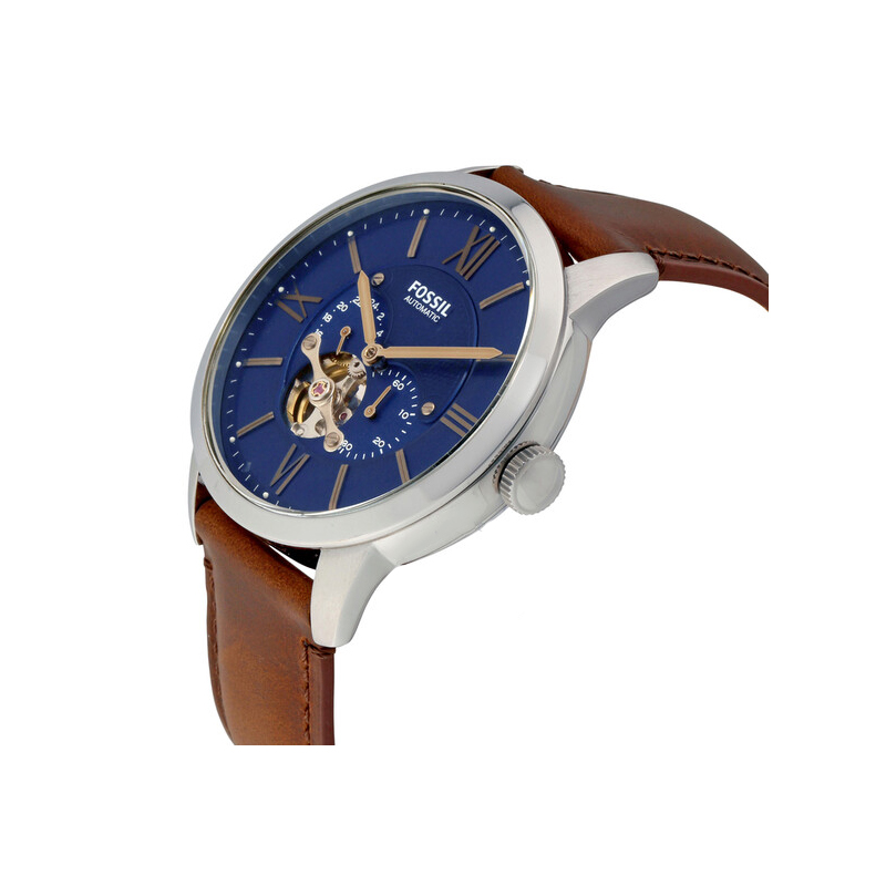 FOSSIL Часы Wrist Watch Automatic Mechanical Movement Leather Strap 44mm Blue Dial Men's Watch, Blue Dial