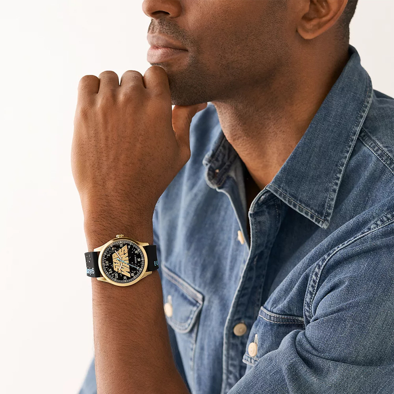 FOSSIL Часы Wrist Watch Quartz Movement Silicone Strap 42mm Black Dial Unisex, Black Dial