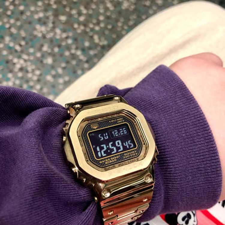 GMW-5000 — оригинальная модель G-Shock 1983 года. Серия GMW-B5000 унаследовала ее характерный квадратный дизайн и получила полностью металлическую отделку вместе с улучшенными функциями, включая связь со смартфоном. Технология высокоплотного монтажа также позволяет часам сохранять свой размер. Задняя часть часов имеет прочную винтовую застежку и обработана DLC для устойчивости к износу.