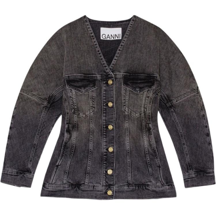 GANNI Куртка джинсовая с контрастной строчкой, Black