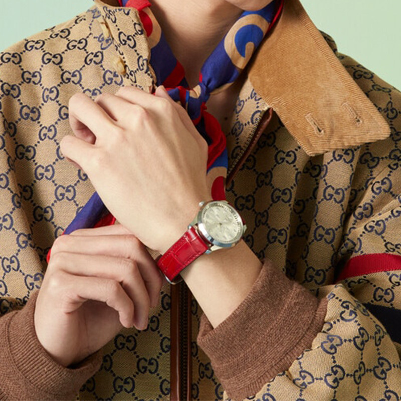 GUCCI Часы G Timeless Collection Wrist Watch Automatic Mechanical Movement Crocodile Leather Strap 38mm Silver Dial Unisex