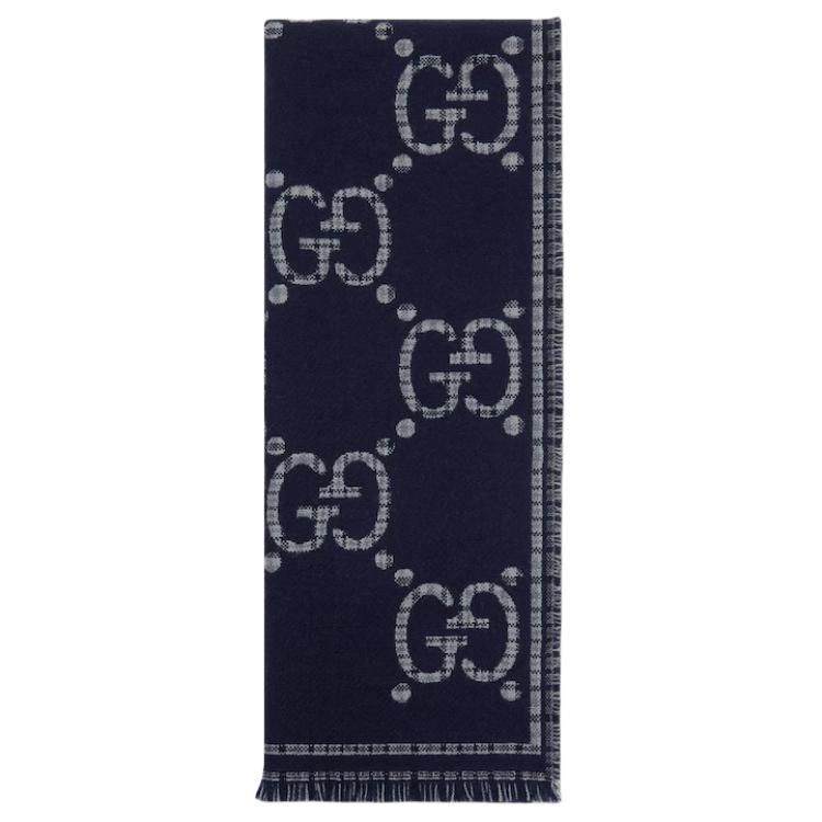 GUCCI Джаккардовый шарф с бахромой, Blue 40 572₽