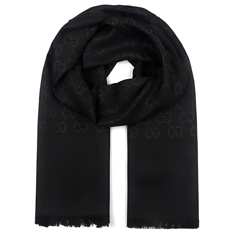 GUCCI Шерстяной шелковый шарф GG Logo черный, Black