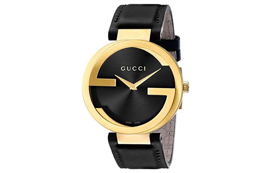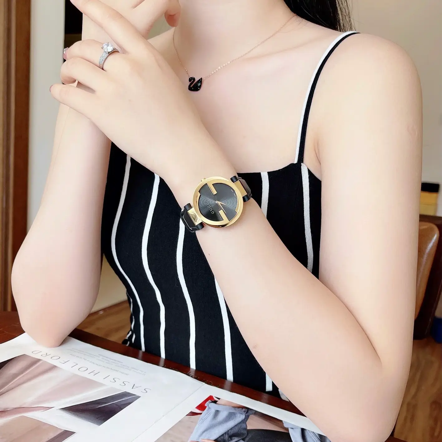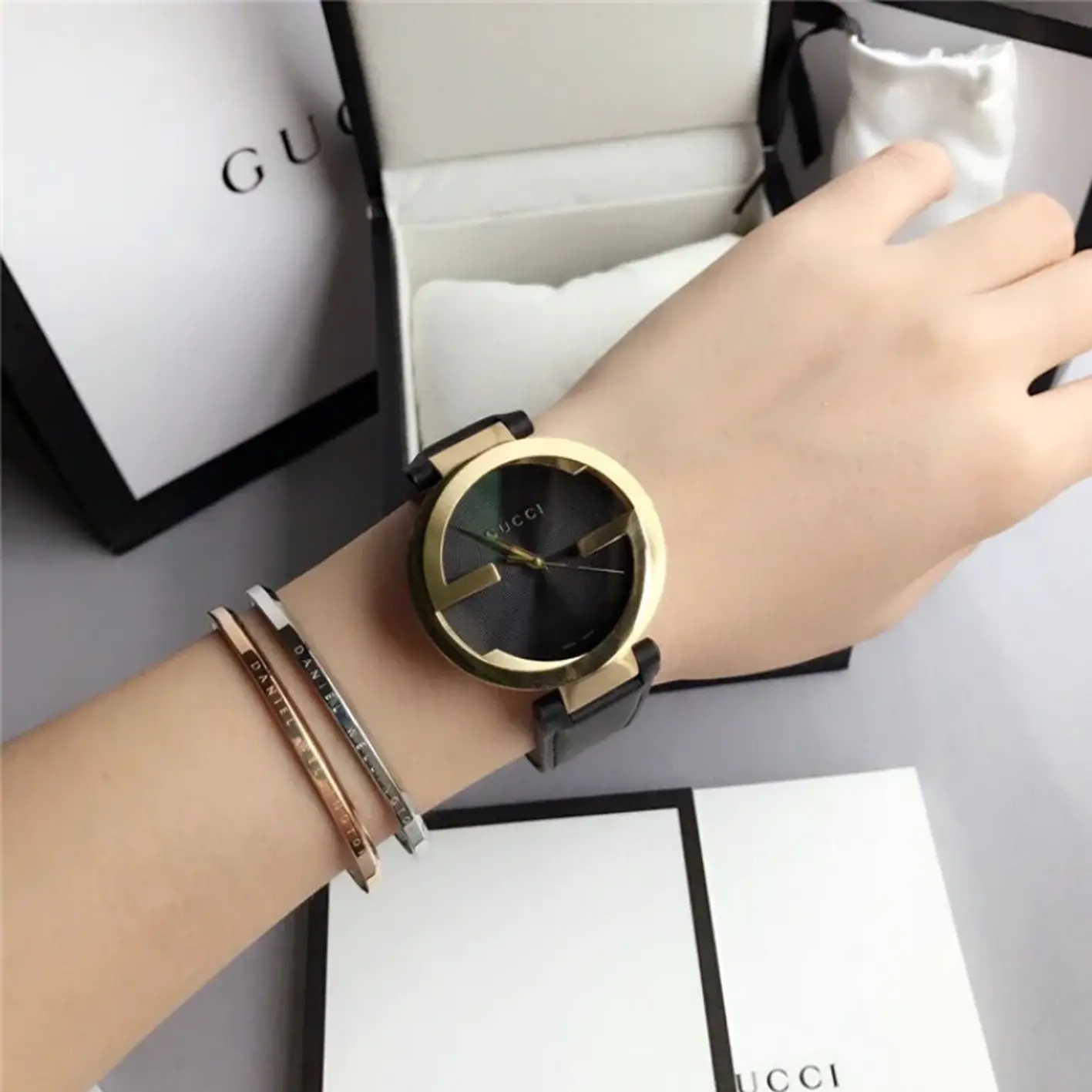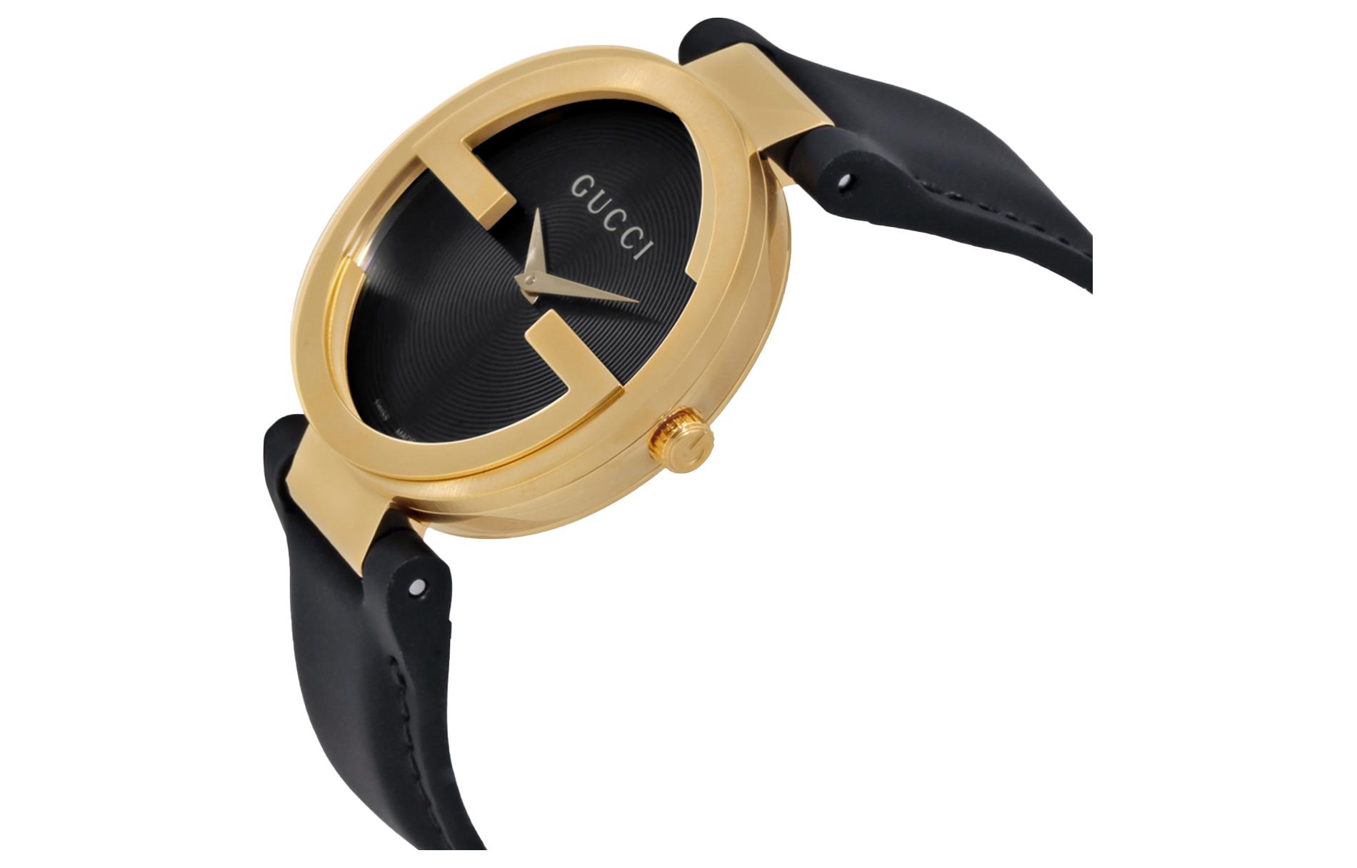 GUCCI Часы Interlocking Wrist Watch Quartz Movement Leather Strap Black Dial Unisex