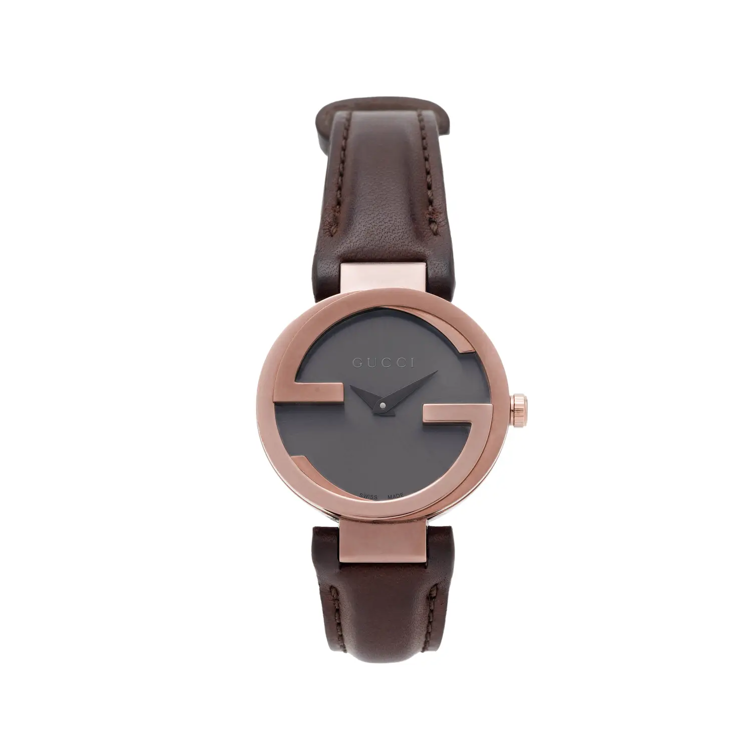 GUCCI Часы Interlocking Wrist Watch Quartz Movement Leather Strap Black Dial Women's