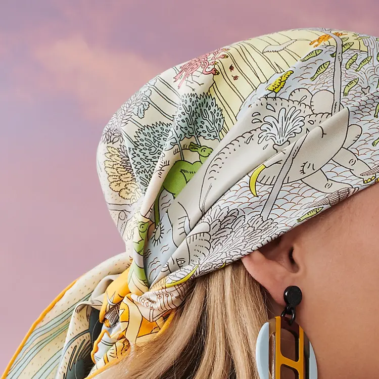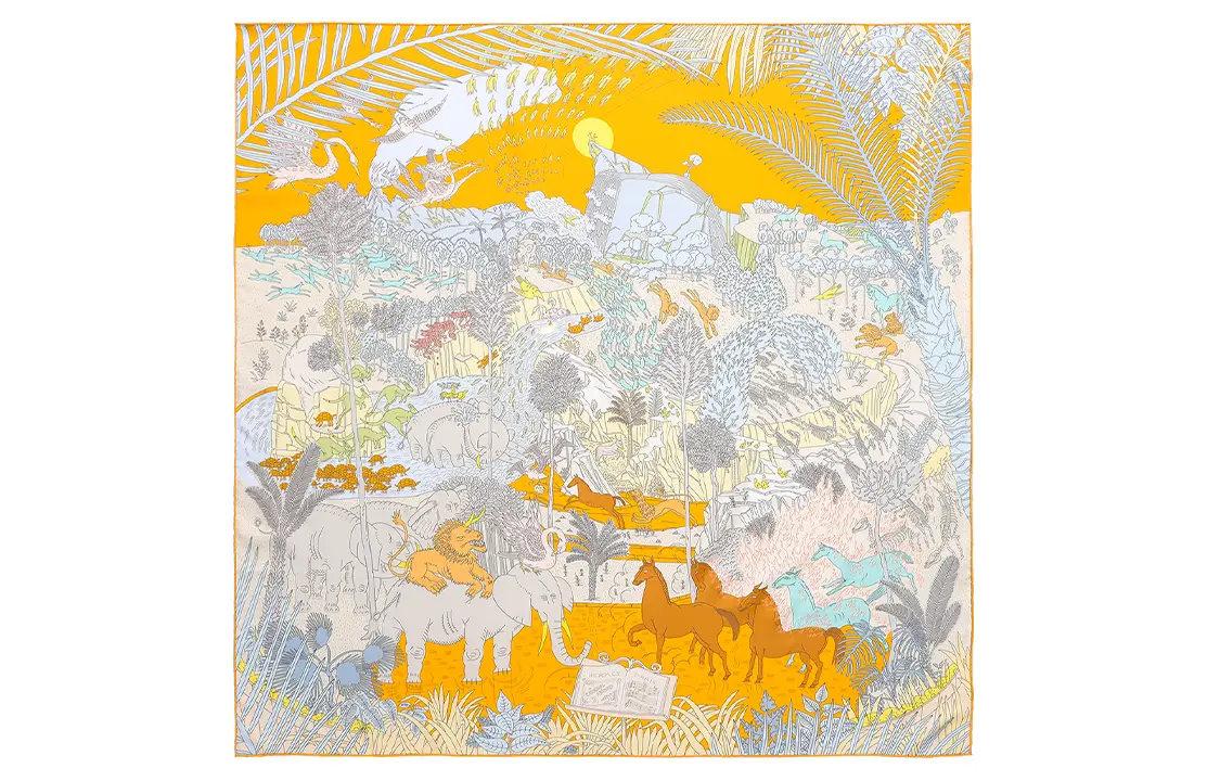 HERMES Шёлковый платок, Chrysanthemum Yellow/Light Green/Gray Green 48 604₽